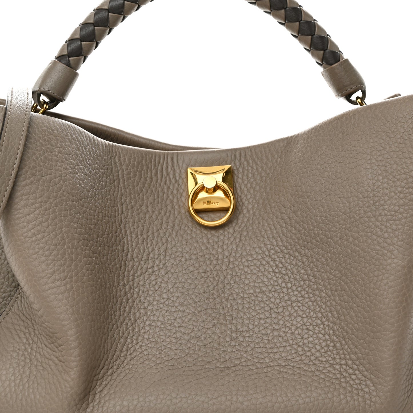 This is an authentic MULBERRY Heavy Grain Small Iris Tote in Grey. This stylish satchel is crafted of luxurious leather in grey. The bag features a braided leather handle, an optional shoulder strap, and gold hardware. The top is open to a beige suede interior with zipper and patch pockets.Follow this item for alerts. Mulberry is a registered trademark of Mulberry. FASHIONPHILE is not affiliated with Mulberry.