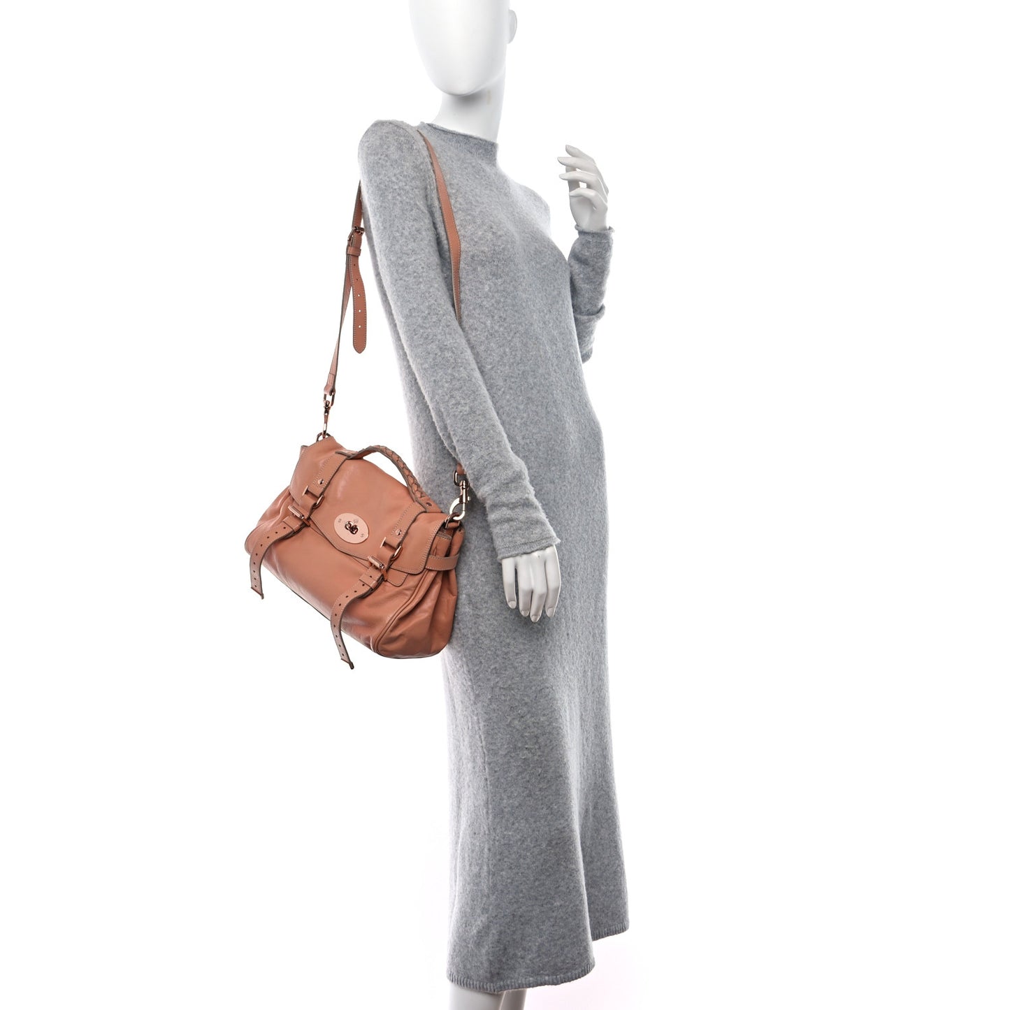 This is an authentic MULBERRY Soft Buffalo Medium Alexa in Plaster Pink. This super chic satchel is crafted of luxuriously textured buffalo leather in pink. The bag features a leather top handle with a braided detail, an adjustable leather shoulder strap with rose gold clasps, a cross over flap with belts, buckles, links, and a rose gold turn lock. The turn lock opens to a light grey fabric interior with zipper and patched pockets.Follow this item for alerts. Mulberry is a registered trademark of Mulberry. FASHIONPHILE is not affiliated with Mulberry.