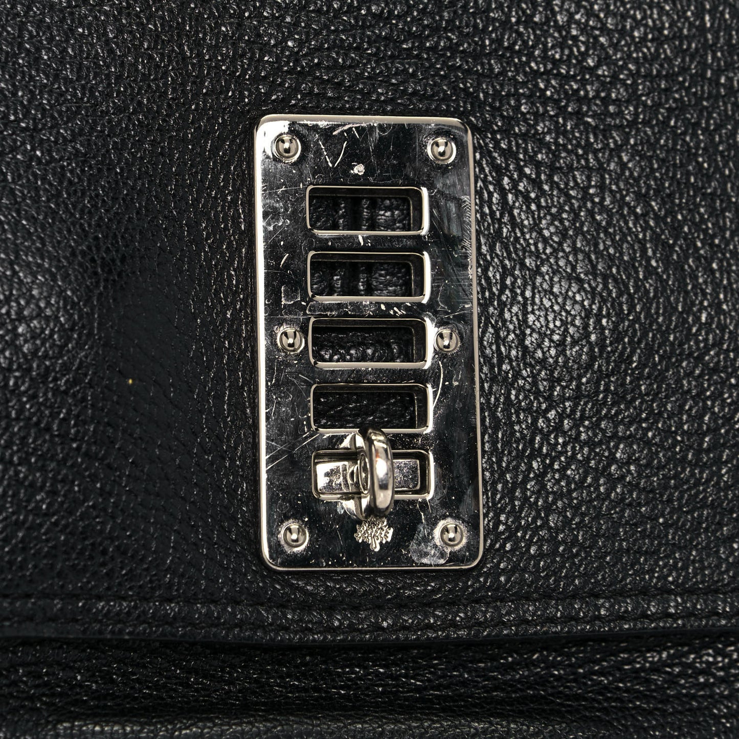 This is an authentic MULBERRY Stone Polished Goatskin Maggie Shoulder Bag in Black. The handbag features rolled leather top handles and a polished silver oval turn lock. This bag also has additional adjustable straps allowing it to convert into a backpack. The front flap opens to a black fabric interior with a zipper pocket, patch pocket, and adjustable side straps.Follow this item for alerts. Mulberry is a registered trademark of Mulberry. FASHIONPHILE is not affiliated with Mulberry.