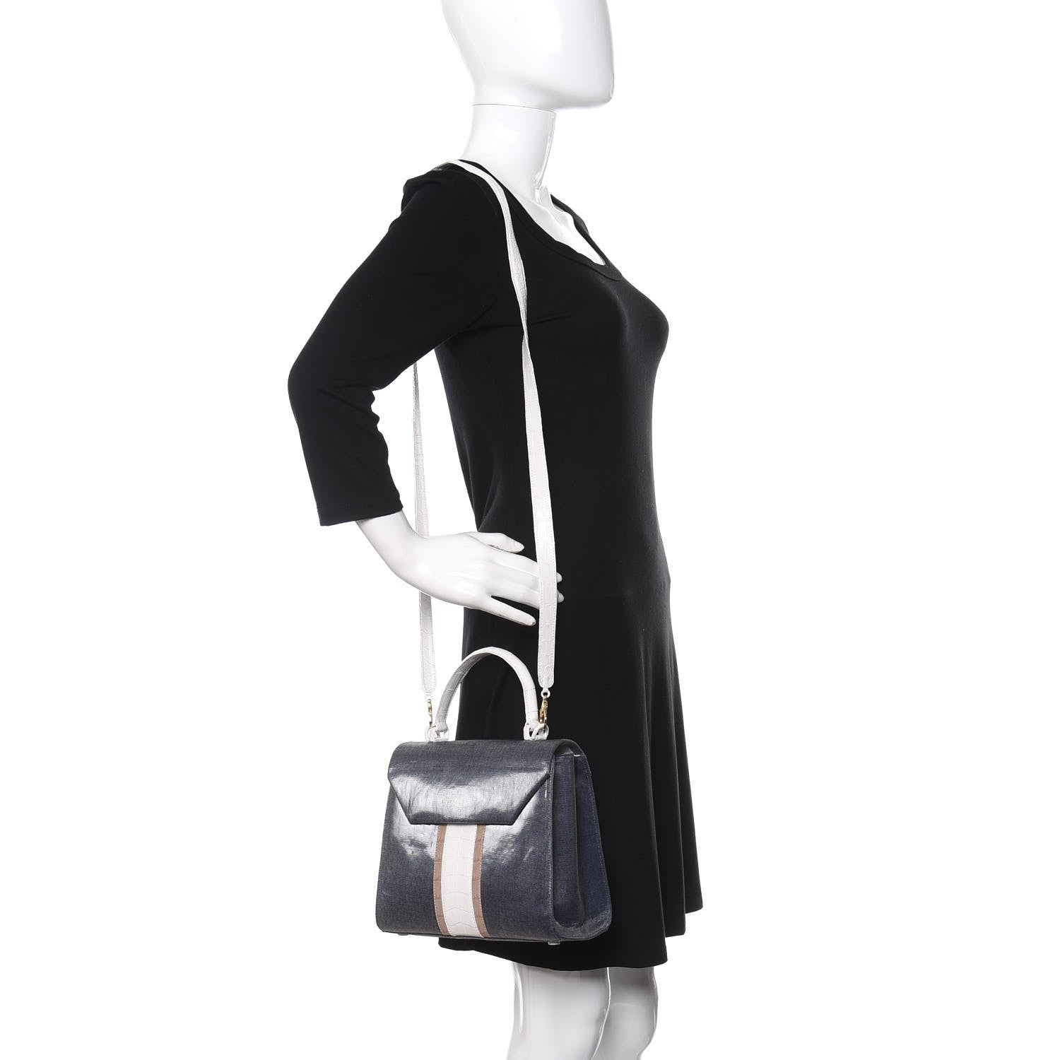 Nancy Gonzalez/ Bags/ Shoulder Bags /Nancy Gonzalez Crocodile Linen Mini Lily Top Handle Bag Navy