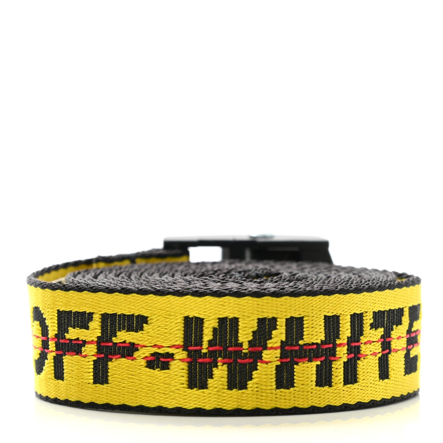 This is an authentic OFF-WHITE Industrial Belt in Yellow. This stylish belt is crafted of yellow industrial canvas designed with a black Off-White logo print and black buckle.Follow this item for alerts. Off-White is a registered trademark of Off-White. FASHIONPHILE is not affiliated with Off-White.