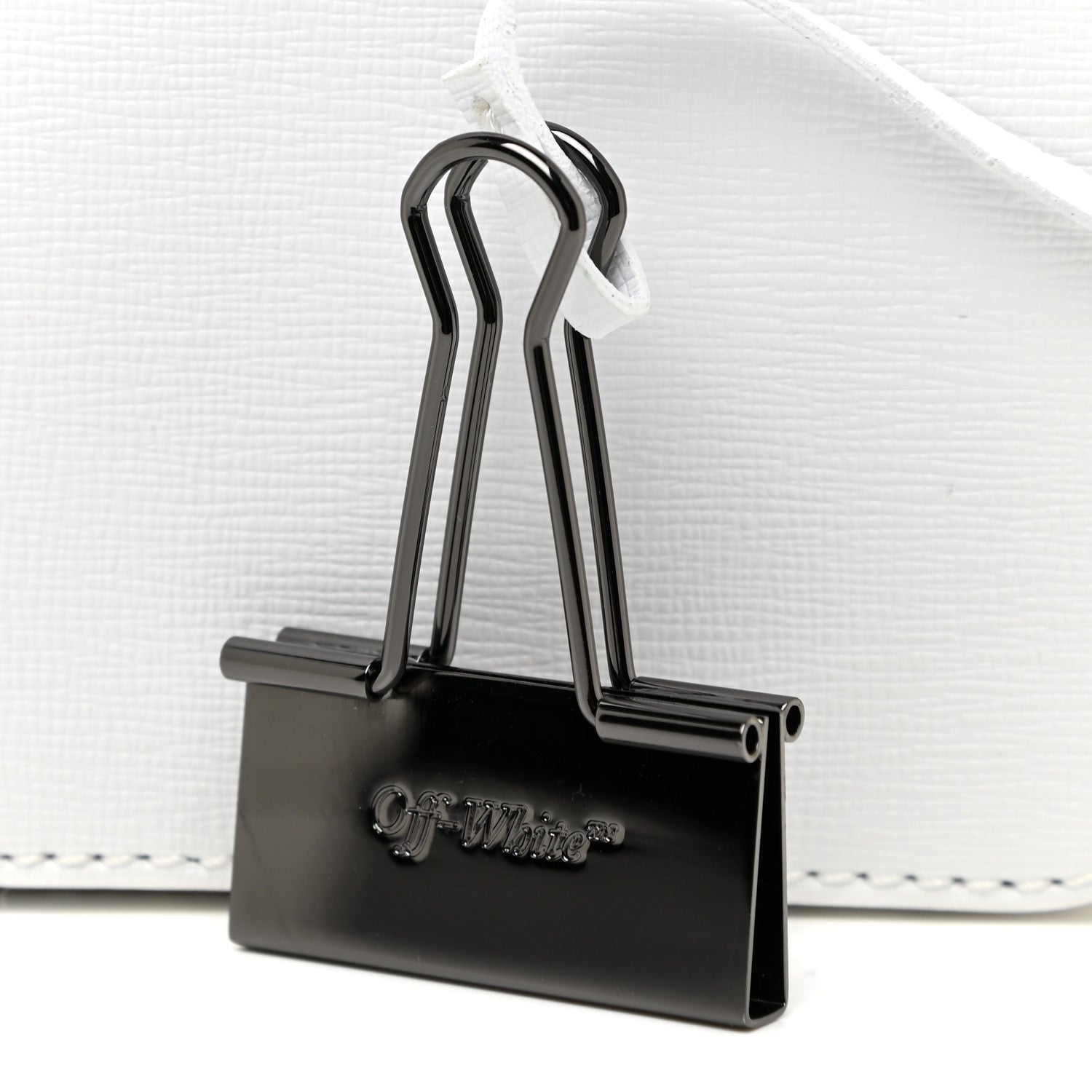 This is an authentic OFF-WHITE Saffiano Flap Shoulder Bag in White. This structured bag is finely crafted of saffiano. The front features a flap with magnetic closure. The interior features two pockets lined in black leather.Follow this item for alerts. Off-White is a registered trademark of Off-White. FASHIONPHILE is not affiliated with Off-White.
