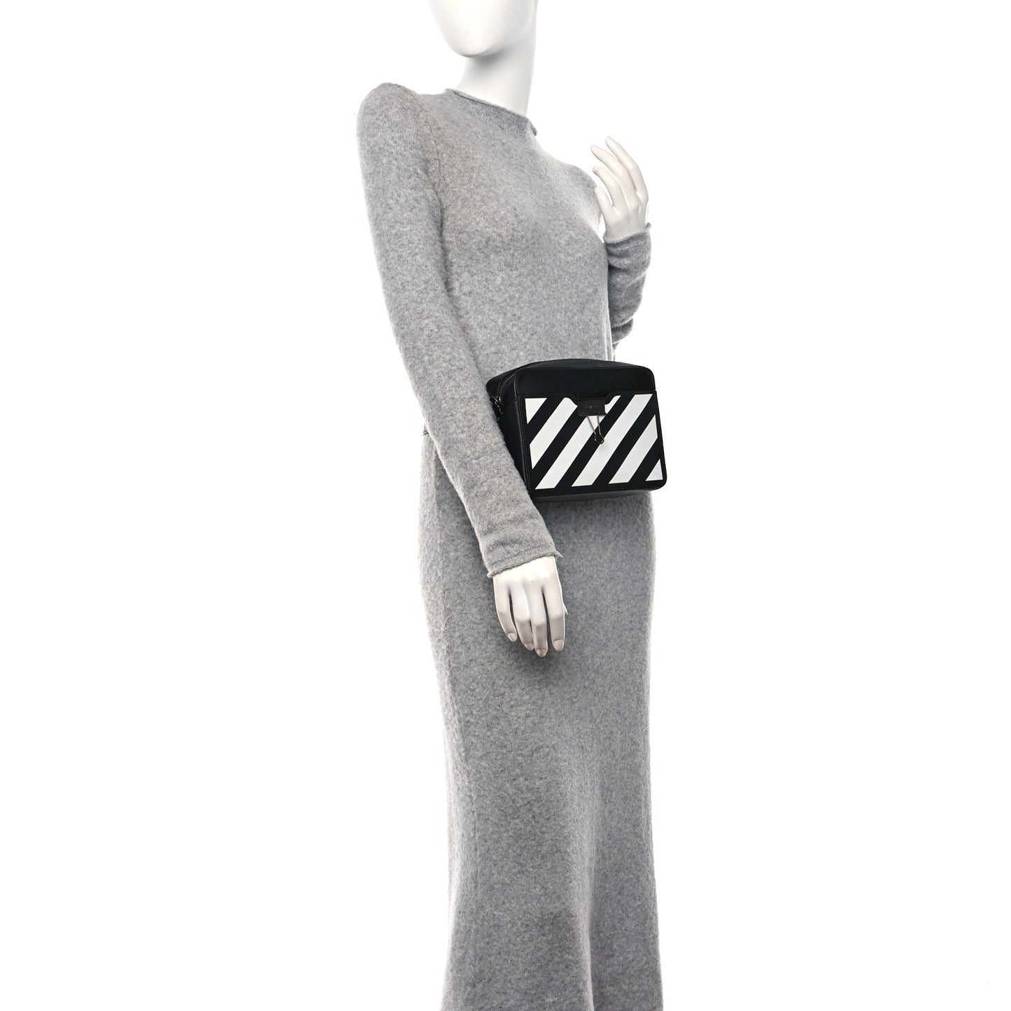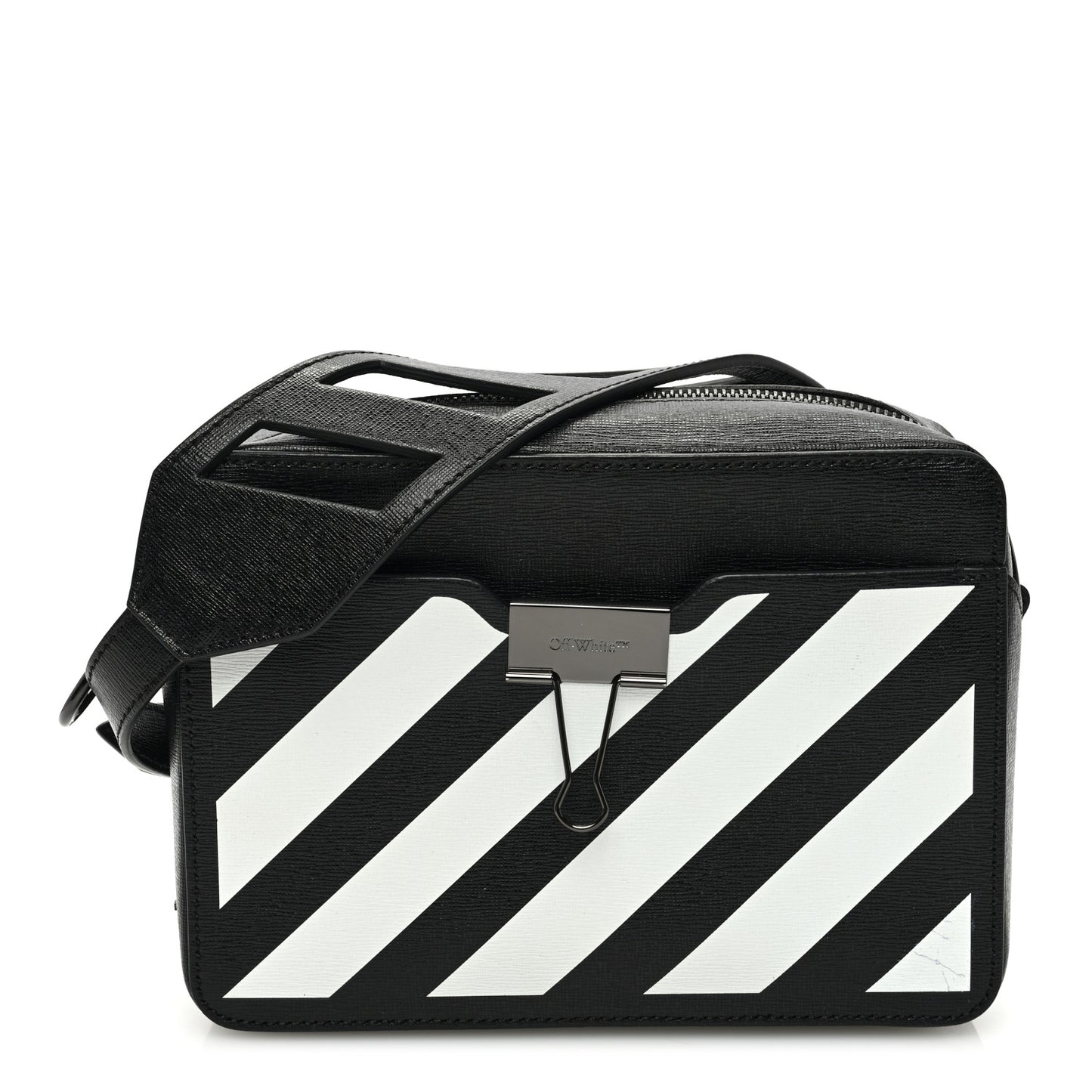 Off-White/ Bags/ Belt Bags /Off-White Saffiano Striped Diag Binder Belt Bag Black
