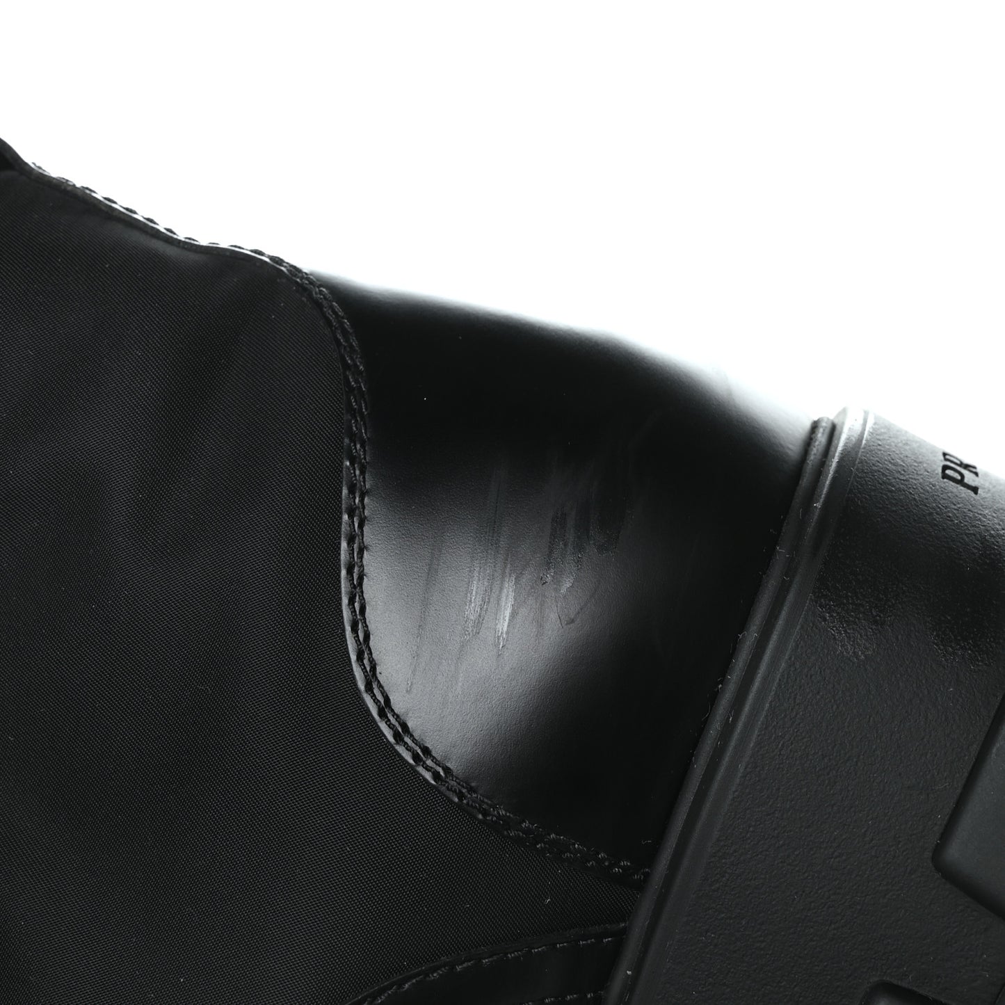 Prada/ Accessories/ Shoes /Prada Spazzolato Rois Nylon Metal Triangle Logo Monolith Pouch Pocket 55mm Boots 41 Black
