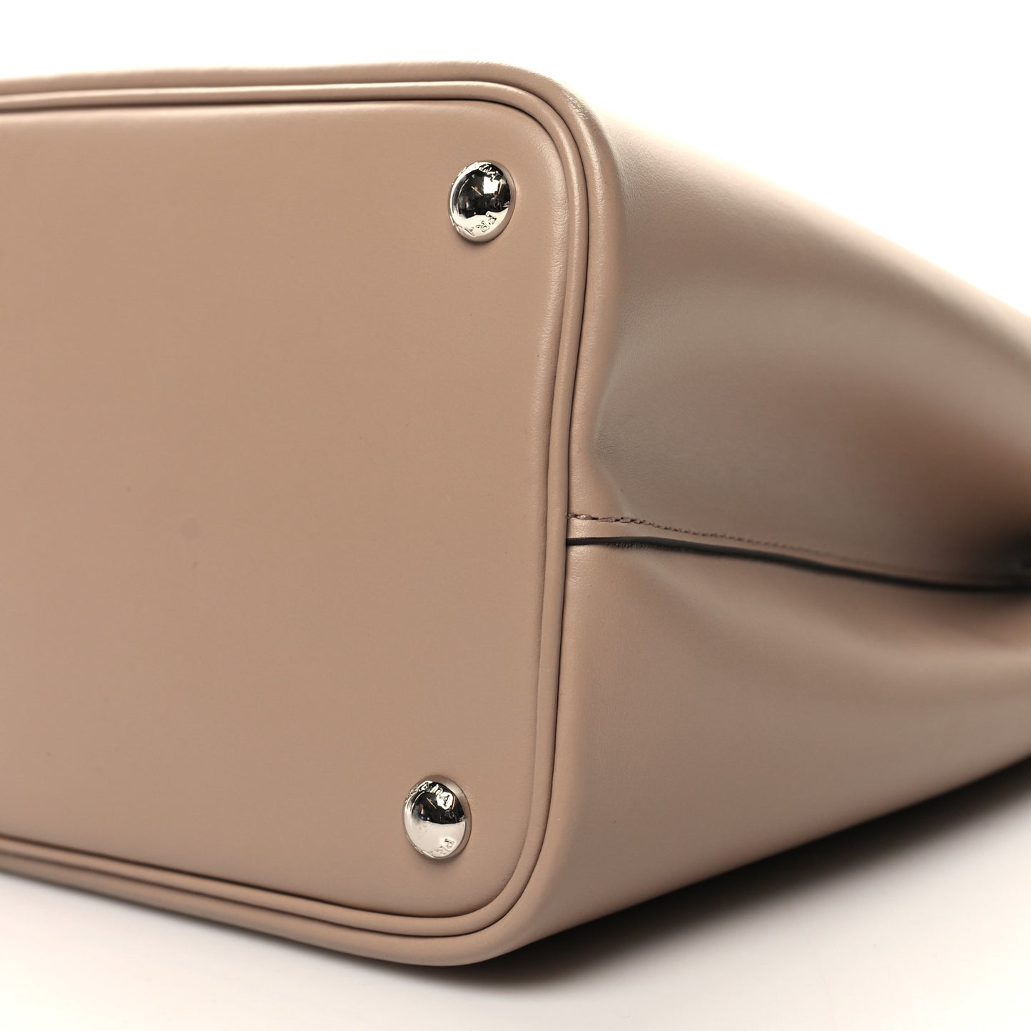 This is an authentic PRADA City Calfskin Braided Medium Double Bag in Cammeo. This tote is crafted of polished calfskin leather in beige. The bag features rolled braided leather top handles, and an optional, adjustable shoulder strap with polished gold hardware. The top is open to a partitioned smooth matching leather interior with a central flap pocket.Follow this item for alerts. Prada is a registered trademark of Prada. FASHIONPHILE is not affiliated with Prada.