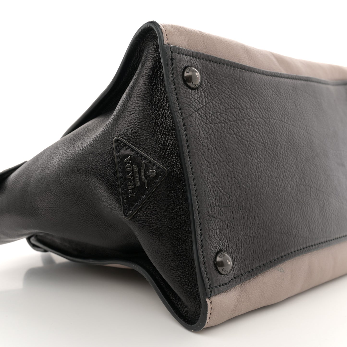 Prada/ Bags/ Shoulder Bags /Prada Glace Calfskin Sound Tote Bag Pomice Black