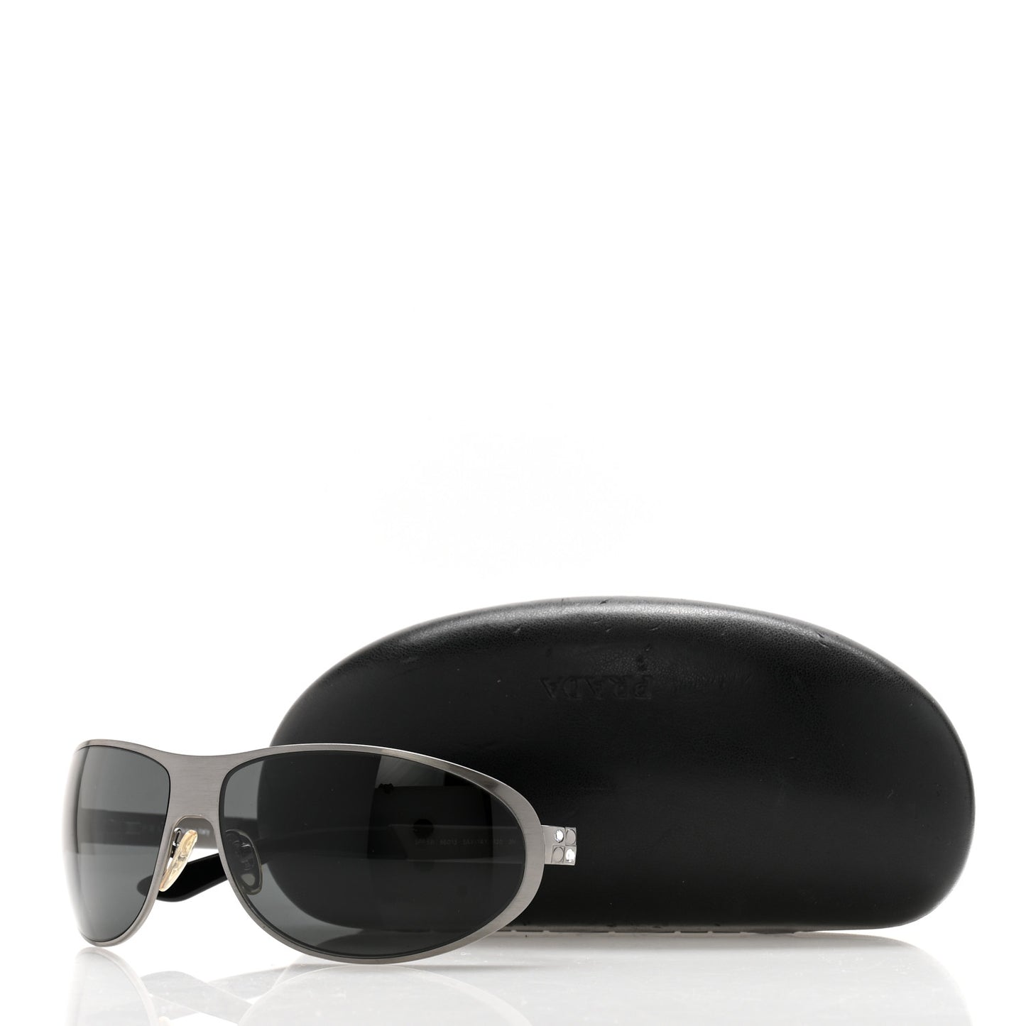 This is an authentic pair of PRADA Gradient Aviator Sunglasses SPR 59N in Black. These classic aviator sunglasses featuresilver rims with gradient grey lenses, and the Prada logo at the temple. These are spectacular sunglasses for everyday use with stylish sophistication, only from Prada!