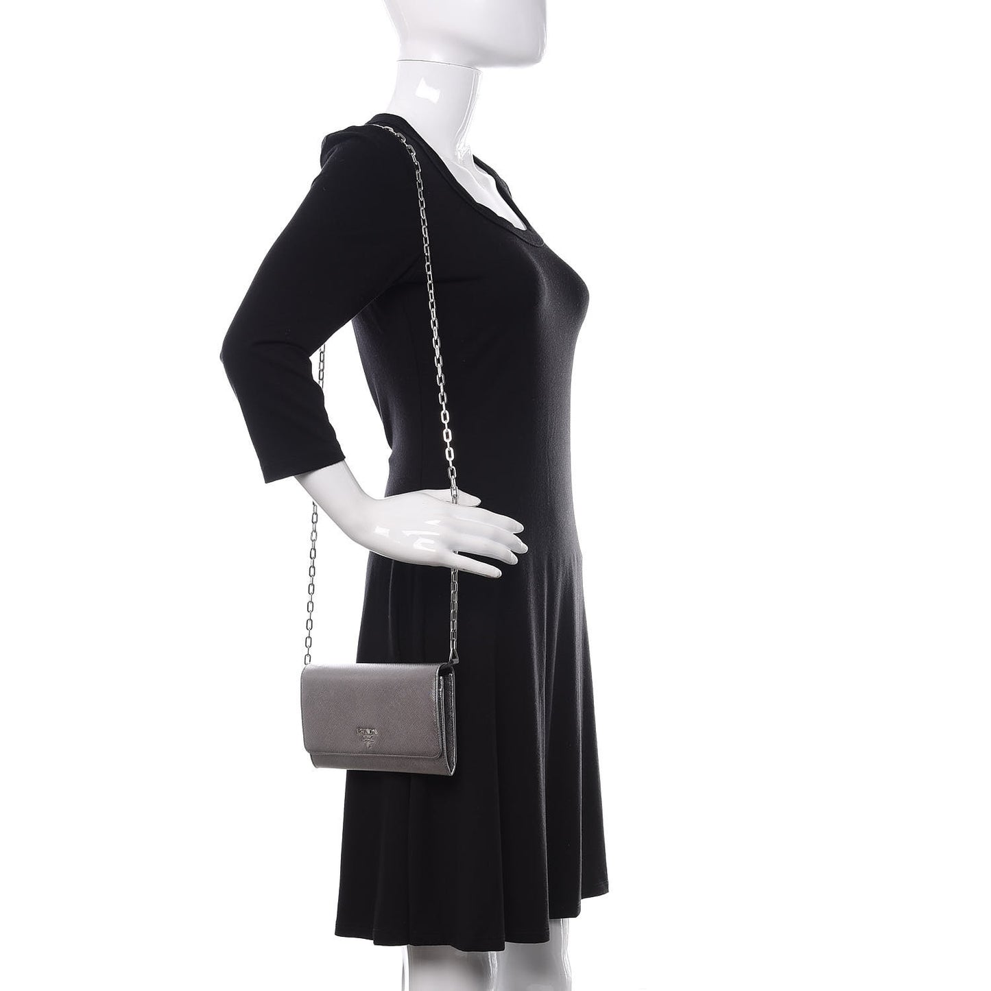 Prada/ Bags/ Wallet Style /Prada Metallic Saffiano Metal Chain Wallet Cromo