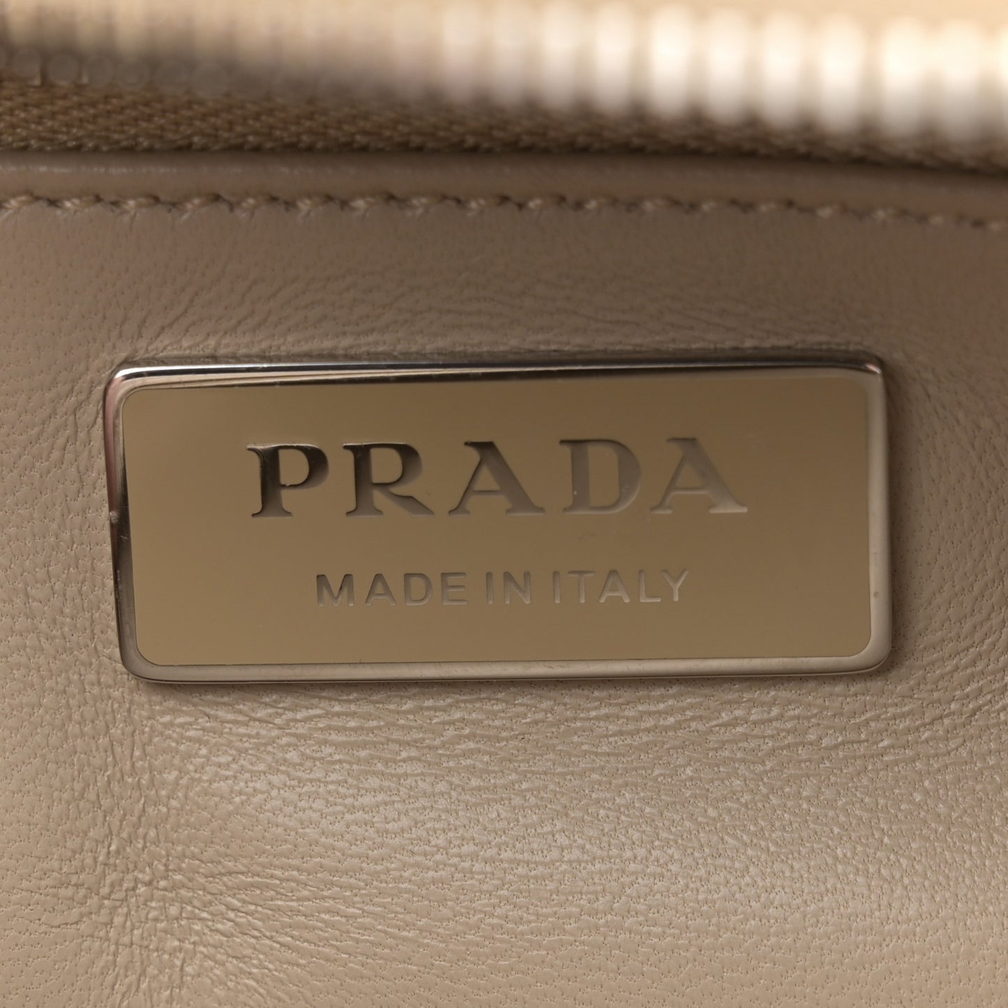 This is an authentic PRADA Nappa Antique Multi-Pocket Shoulder Bag in Deserto. This chic shoulder bag is crafted of antique textured nappa leather in beige. The set features an adjustable beige and cream patterned nylon shoulder strap, and a front zipper pocket. The top zipper opens to a beige leather interior with a zipper pocket.Follow this item for alerts. Prada is a registered trademark of Prada. FASHIONPHILE is not affiliated with Prada.
