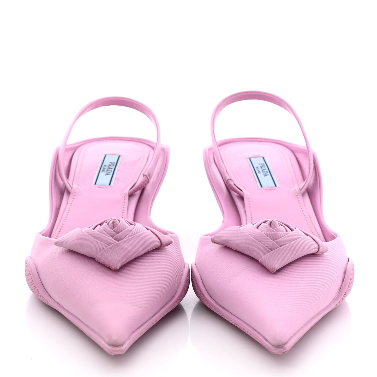 Prada/ Accessories/ Shoes /Prada Nylon Flower Pointed Toe 45mm Slingback Pumps 38.5 Primula