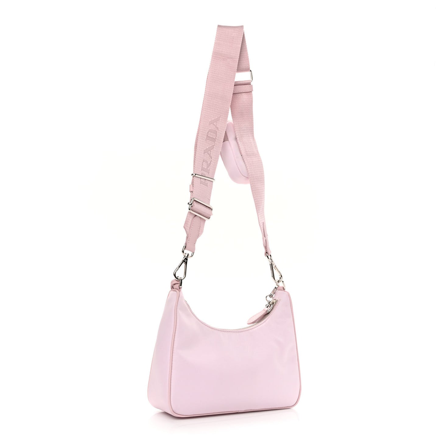 This is an authentic PRADA Nylon Re-Edition 2005 Shoulder Bag in Alabastro. This petite messenger bag is crafted of pink nylon with polished silver hardware. It features saffiano cross-grain leather trim an adjustable pink nylon crossbody strap, a silver chain strap, and a removable coin purse. The top zipper opens to a pink Prada monogram jacquard interior.Follow this item for alerts. Prada is a registered trademark of Prada. FASHIONPHILE is not affiliated with Prada.