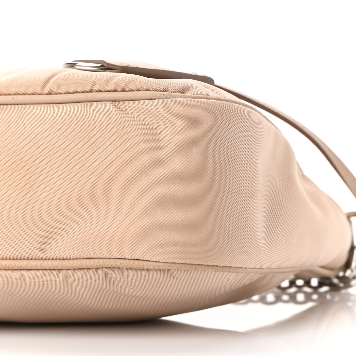 This is an authentic PRADA Nylon Re-Edition 2005 Shoulder Bag in Cammeo. This shoulder bag is crafted of Prada signature saffiano crossgrain leather in beige. The set features a removable silver chain-link strap, and polished silver hardware. The top zipper opens to a beige Prada logo jacquard interior.Follow this item for alerts. Prada is a registered trademark of Prada. FASHIONPHILE is not affiliated with Prada.