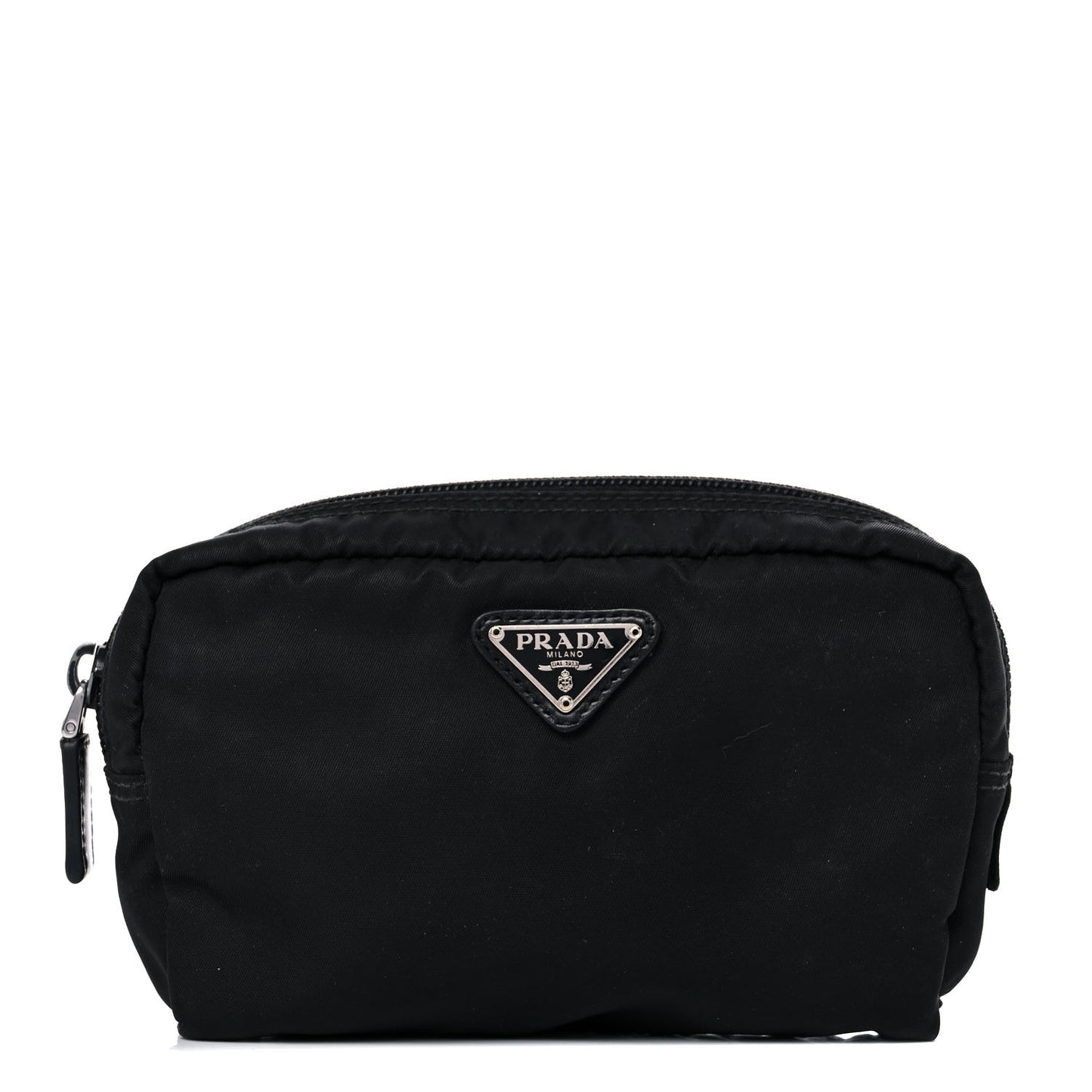 This is an authentic PRADA Nylon Tessuto Cosmetic Pouch in Black. This stylish cosmetics pouch is crafted of fine nylon in black. The bag features a large facing Prada logo plate and a zipper that opens to a matching nylon interior with a zipper pocket.Follow this item for alerts. Prada is a registered trademark of Prada. FASHIONPHILE is not affiliated with Prada.