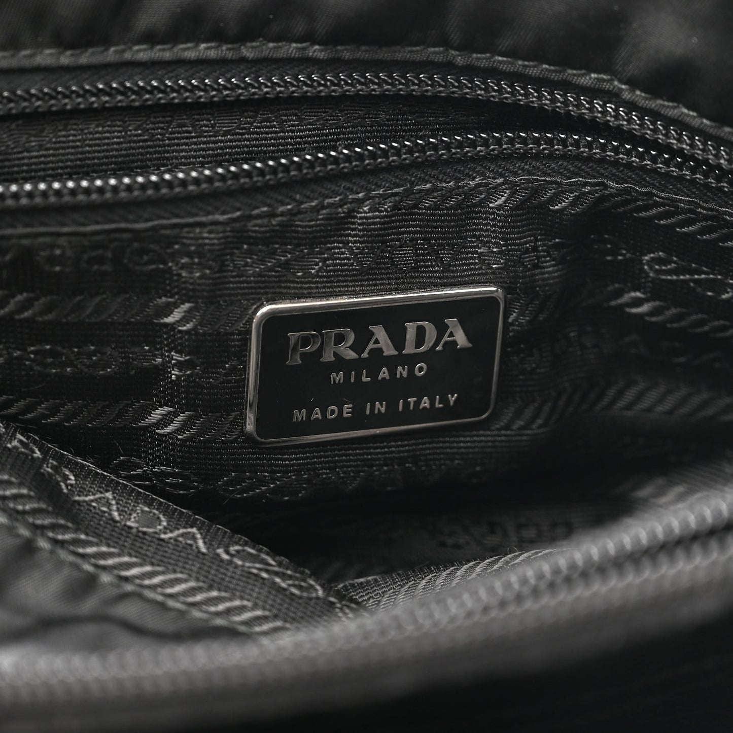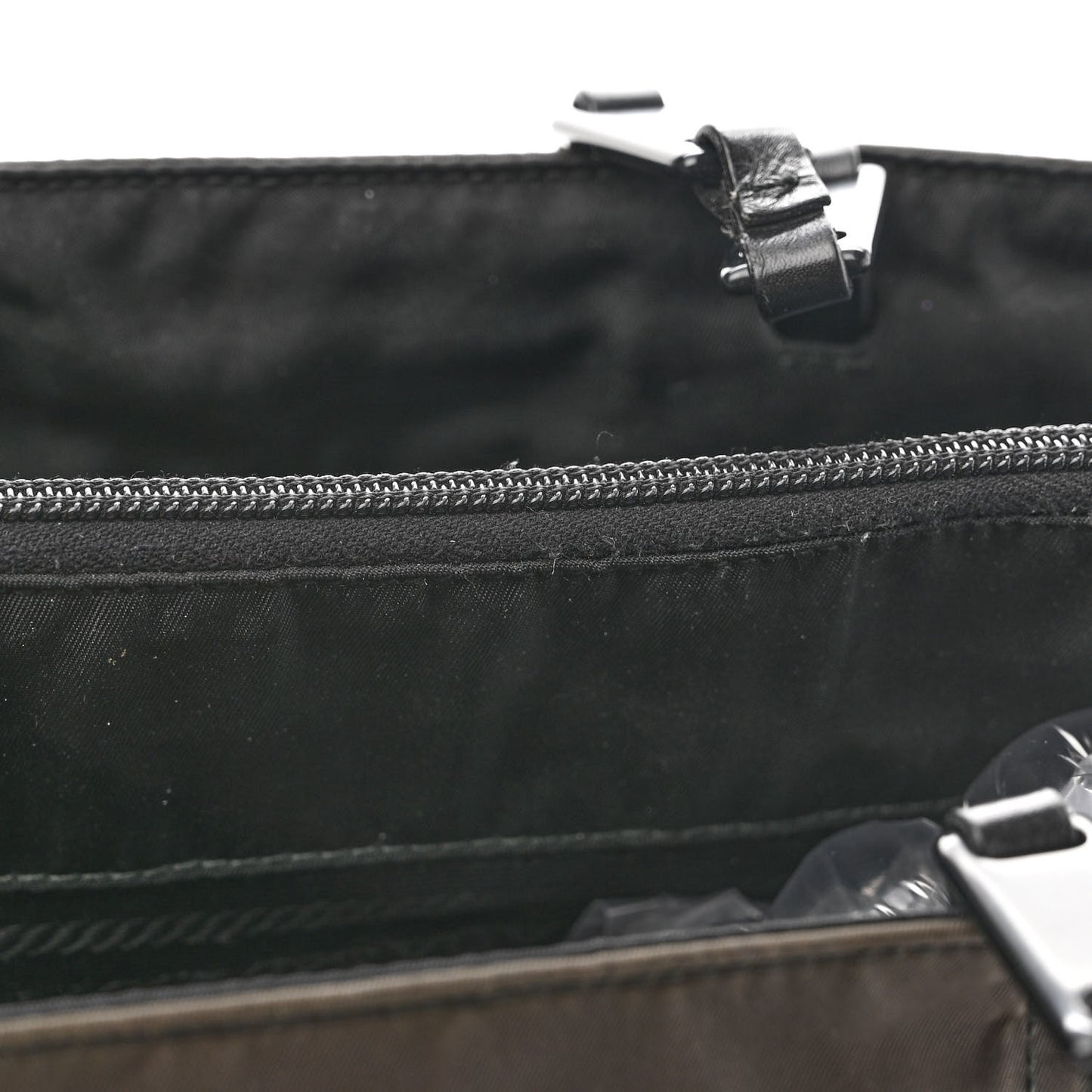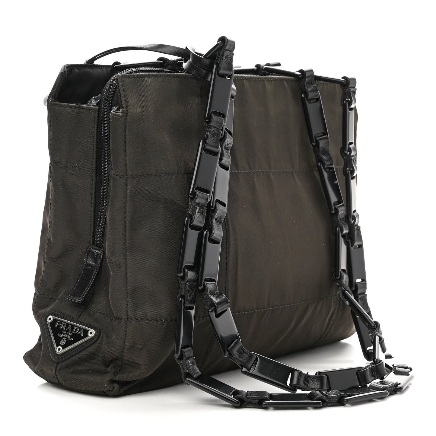 This is an authentic PRADA Nylon Tessuto Shoulder Bag in Mimetico. This stunning shoulder bag is beautifully crafted of olive green tessuto nylon. The bag features a black chain link and leather shoulder straps and an enameled Prada logo. The opens to a black fabric interior with a central zipper compartment and a zipper pocket.Follow this item for alerts. Prada is a registered trademark of Prada. FASHIONPHILE is not affiliated with Prada.