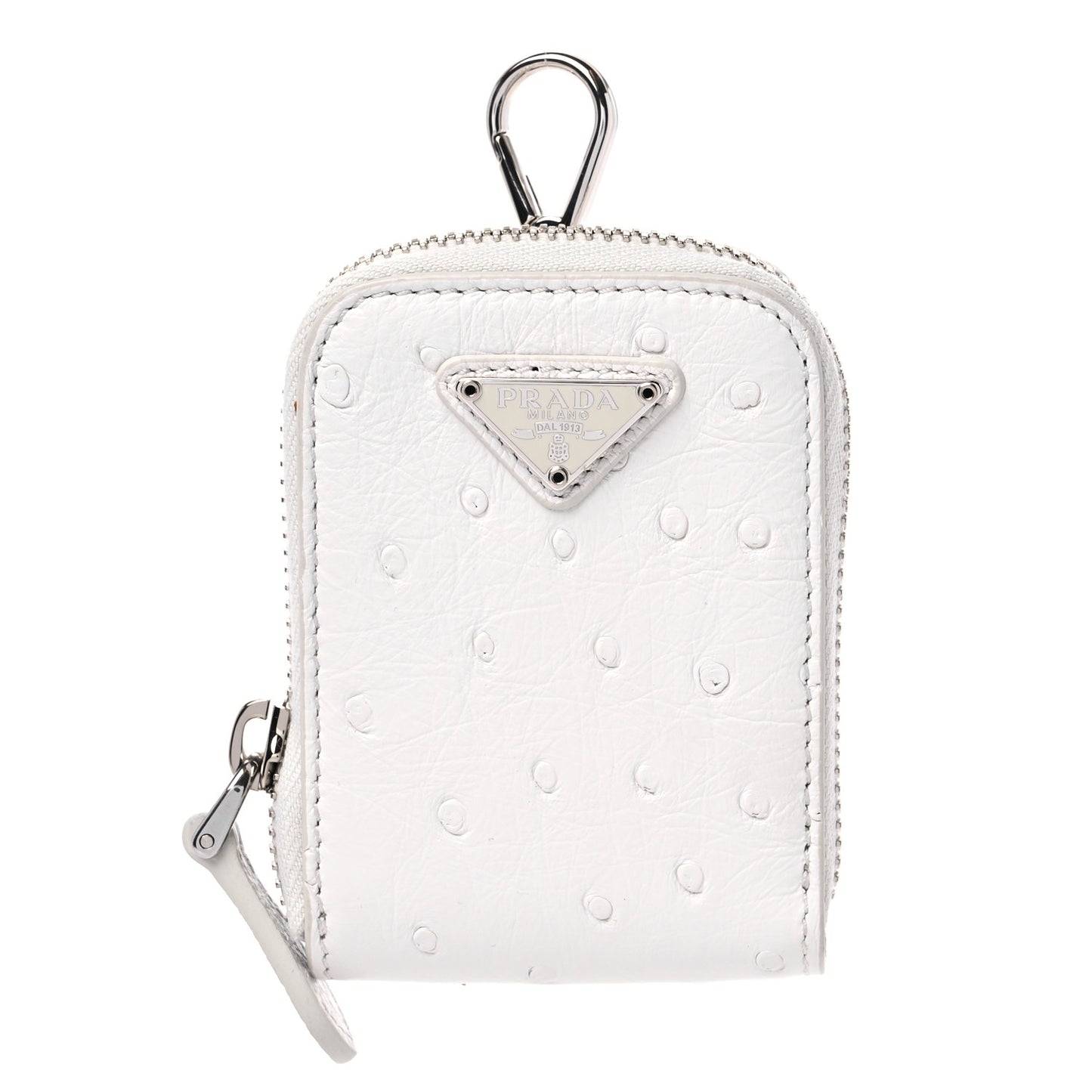 Prada/ Accessories/ Wallets /Prada Ostrich Zip Around Mini Pouch White