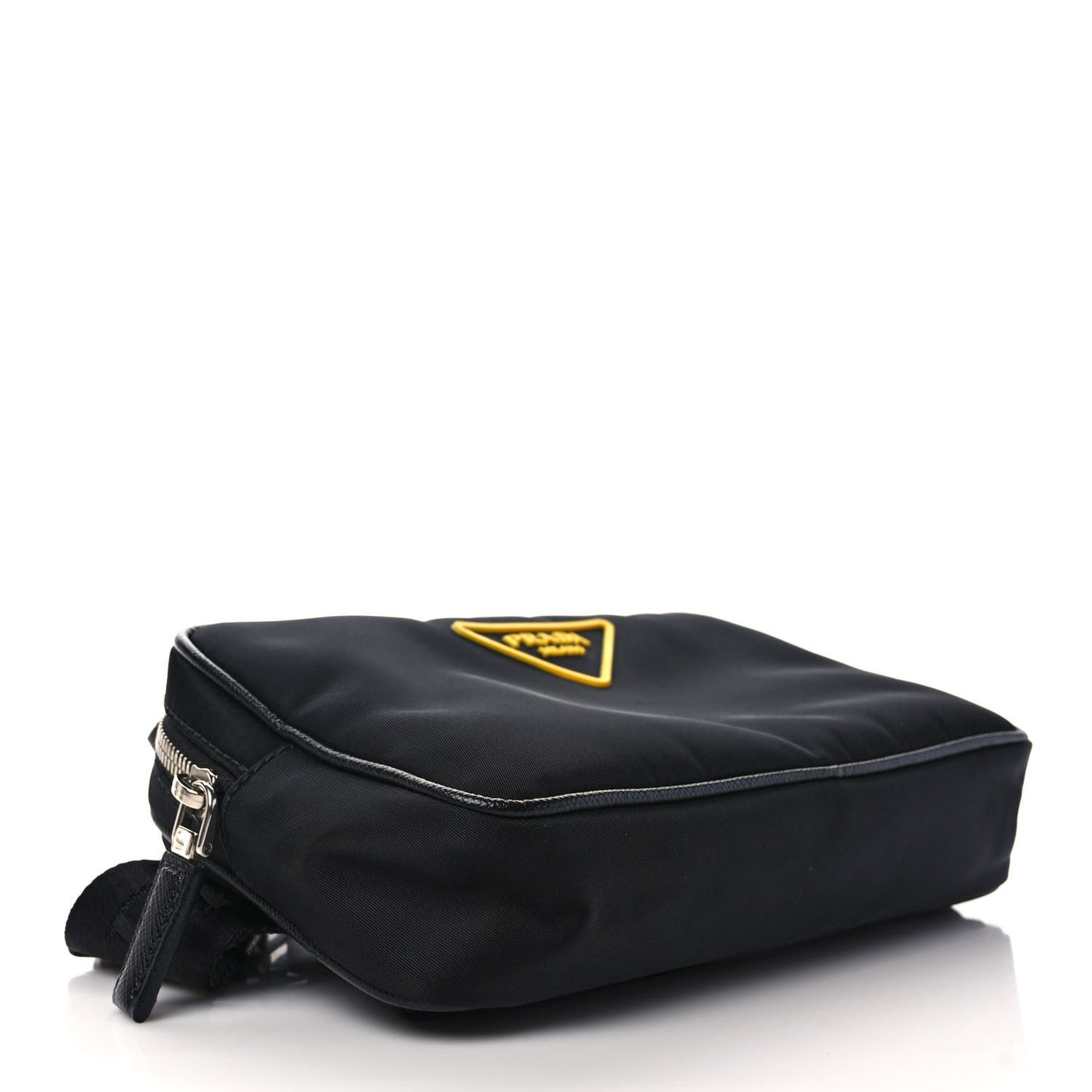 This is an authentic PRADA Re-Nylon Saffiano Belt Bag in Black and Yellow. This chic belt bag is crafted of technical nylon fabric in black. The bag features a long zipper pocket, a front pocket, and nylon strap with polished silver hardware. The top zipper opens to a black fabric interior with a zipper pocket.Follow this item for alerts. Prada is a registered trademark of Prada. FASHIONPHILE is not affiliated with Prada.