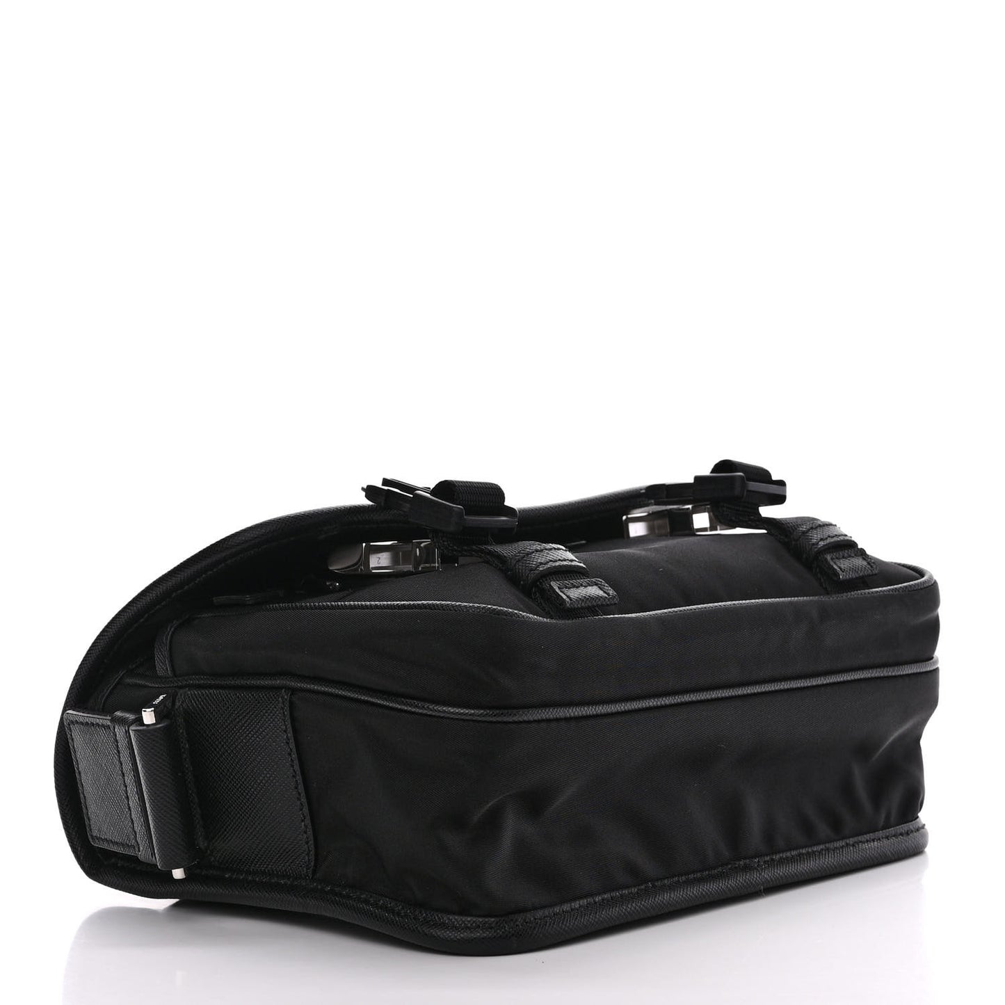 Re-Nylon Saffiano Pocket Double Snap Buckle Shoulder Bag Black