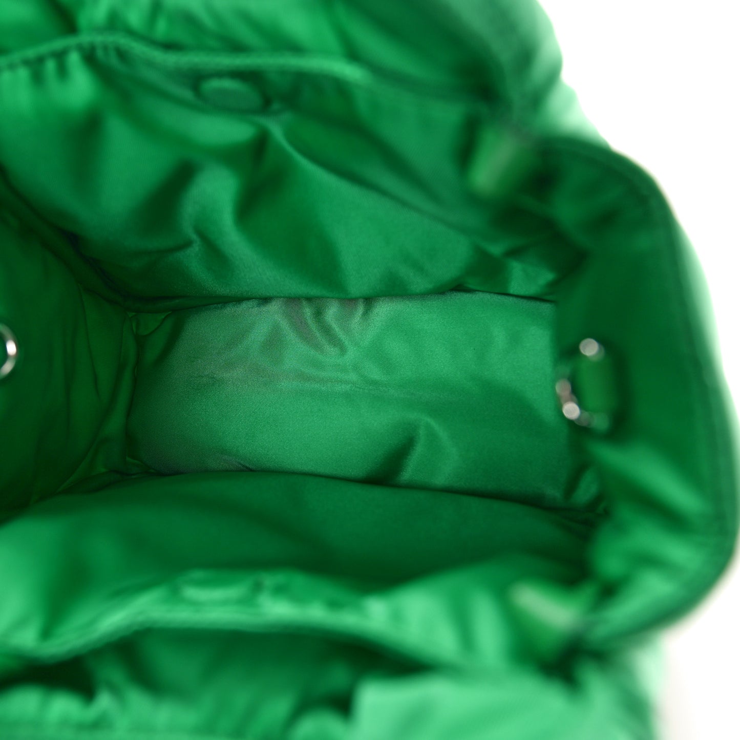 This is an authentic PRADA Re-Nylon Soft Padded Small Double Handled Shoulder Bag in Mango. This petite Prada handbag is crafted of green nylon with silver hardware. It features a top handles and a removable shoulder strap. The top is open to a matching interior with a patch pocket.Follow this item for alerts. Prada is a registered trademark of Prada. FASHIONPHILE is not affiliated with Prada.