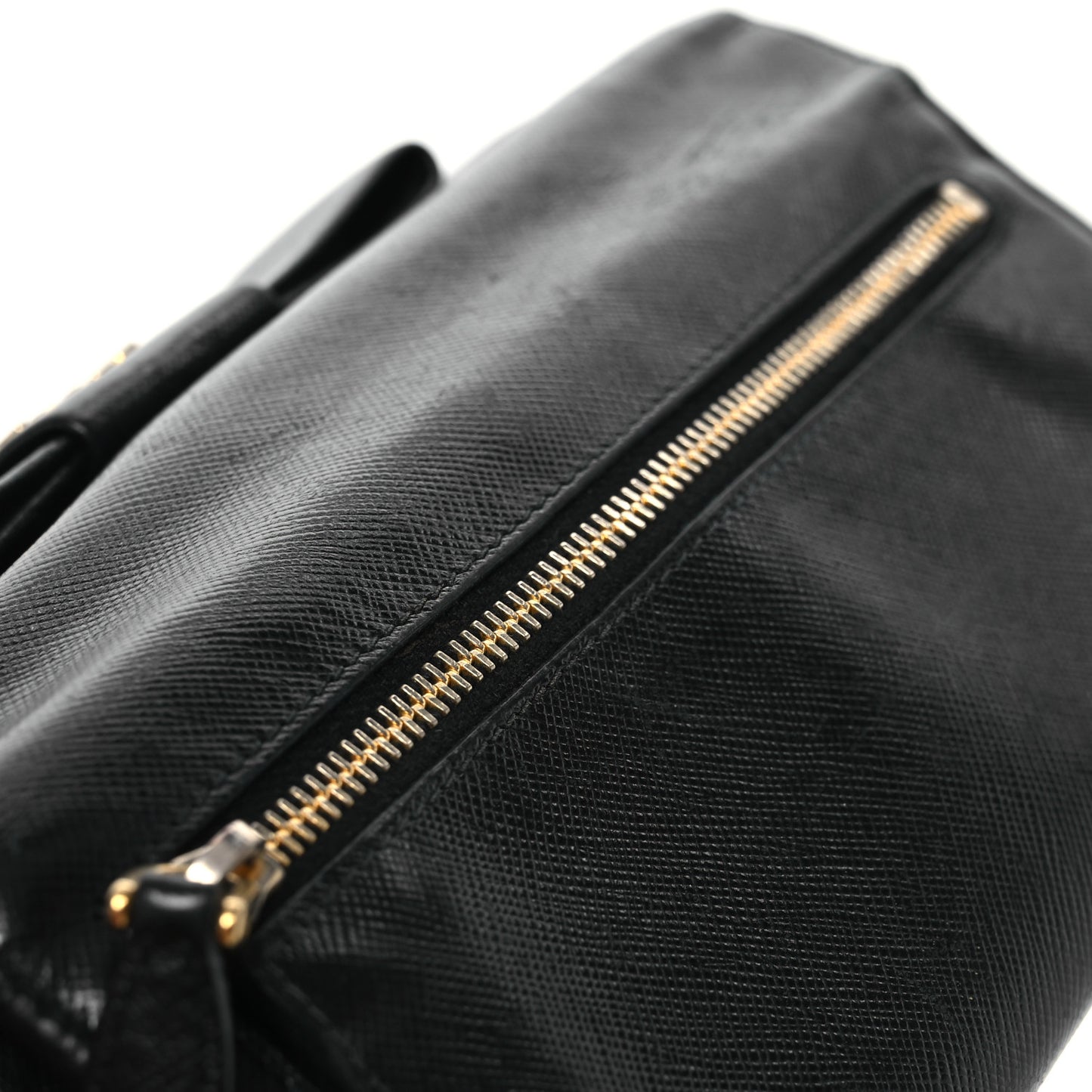 This is an authentic PRADA Saffiano Bow Continental Wallet in Black. This stylish wallet is finely crafted of signature Saffiano cross grain leather with a structured bow accent on the facing flap and zippered pocket on the backside of the wallet. The front flap opens to a matching partitioned leather interior with a central zipper pocket, card slots, and bill slots.Follow this item for alerts. Prada is a registered trademark of Prada. FASHIONPHILE is not affiliated with Prada.