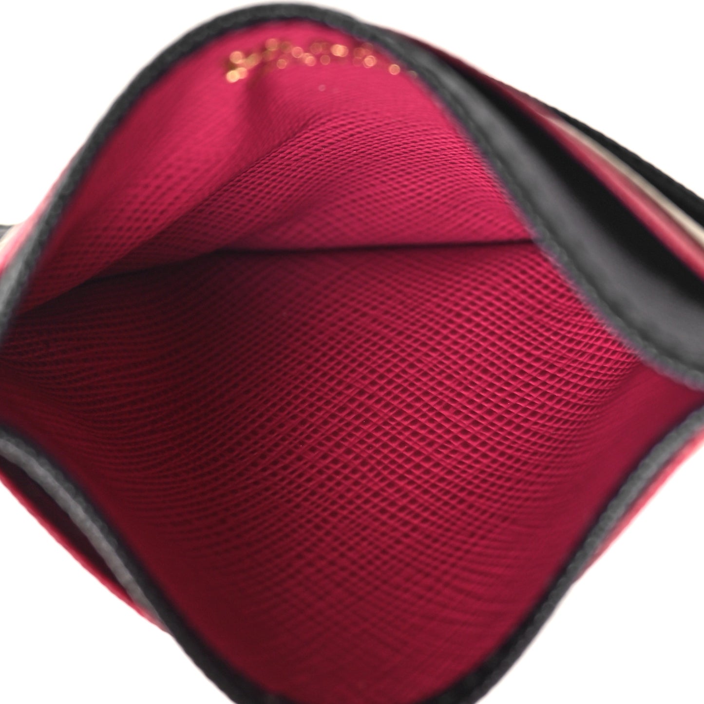 This is an authentic PRADA Saffiano Card Holder in Black and Ibisco. This is a chic card holder that is finely crafted of cross-grain textured saffiano leather in black with a chevron multicolor design. The case features a central slot with fabric interior, two additional slots for cards, and a polished gold Prada logo.