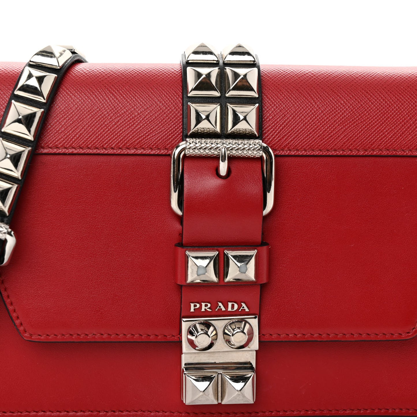 Prada/ Bags/ Shoulder Bags /Prada Saffiano City Calfskin Studded Large Elektra Shoulder Bag Fuoco Black