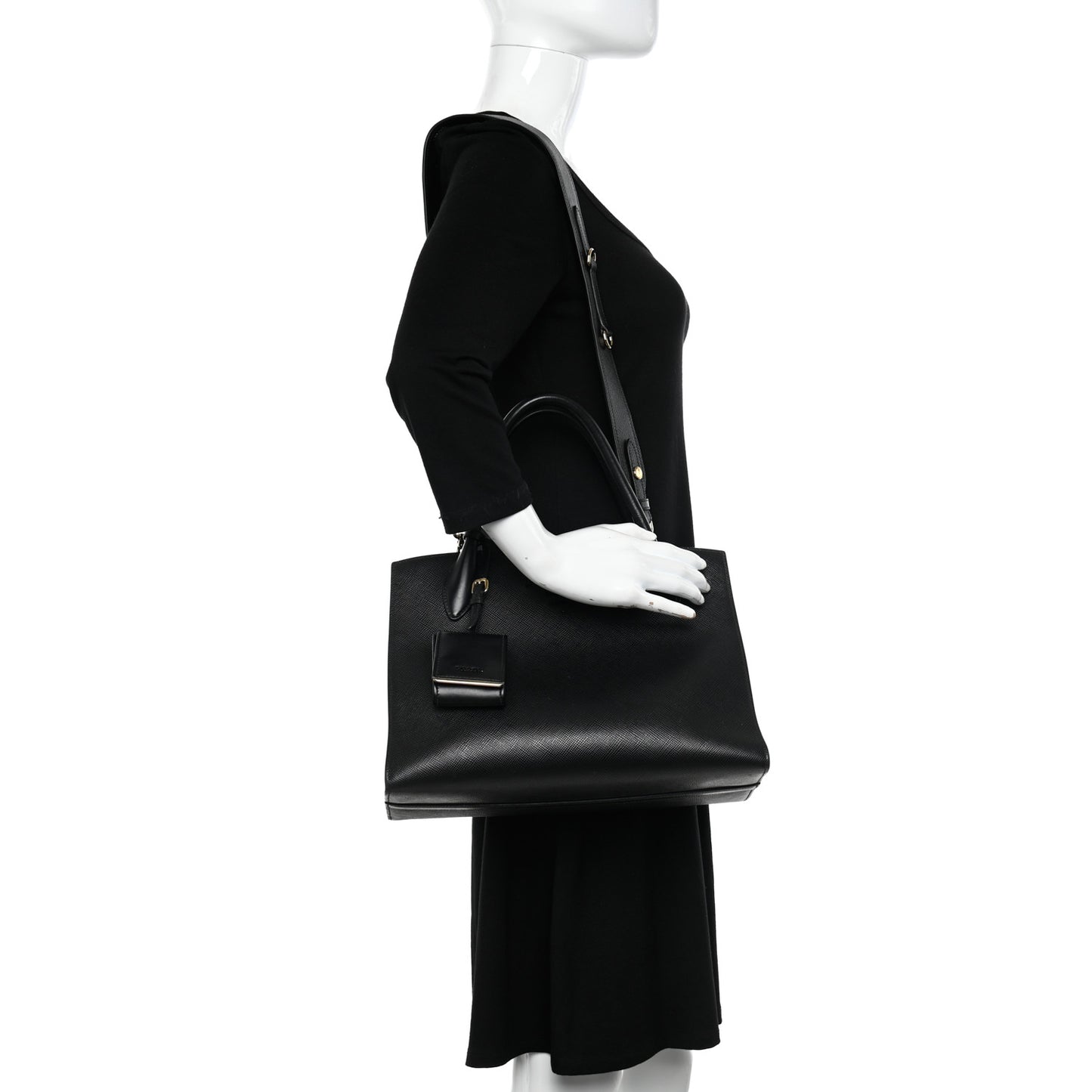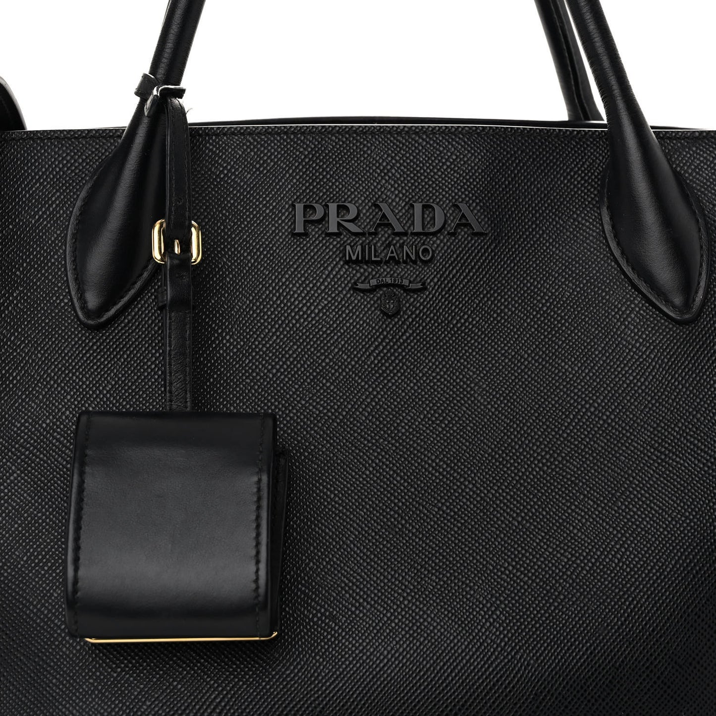 Saffiano Cuir Calfskin Medium Monochrome Top Handle Tote Black