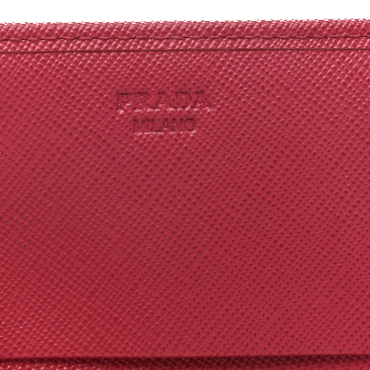 This is an authentic PPRADA Saffiano Fiocco Bow Continental Wallet in Peonia. This stylish wallet is finely crafted of signature saffiano cross-grain leather in pink. The full front flap unsnaps to a fabric and leather interior of bill slots, card slots, and a partition zipper compartment.Follow this item for alerts. Prada is a registered trademark of Prada. FASHIONPHILE is not affiliated with Prada.