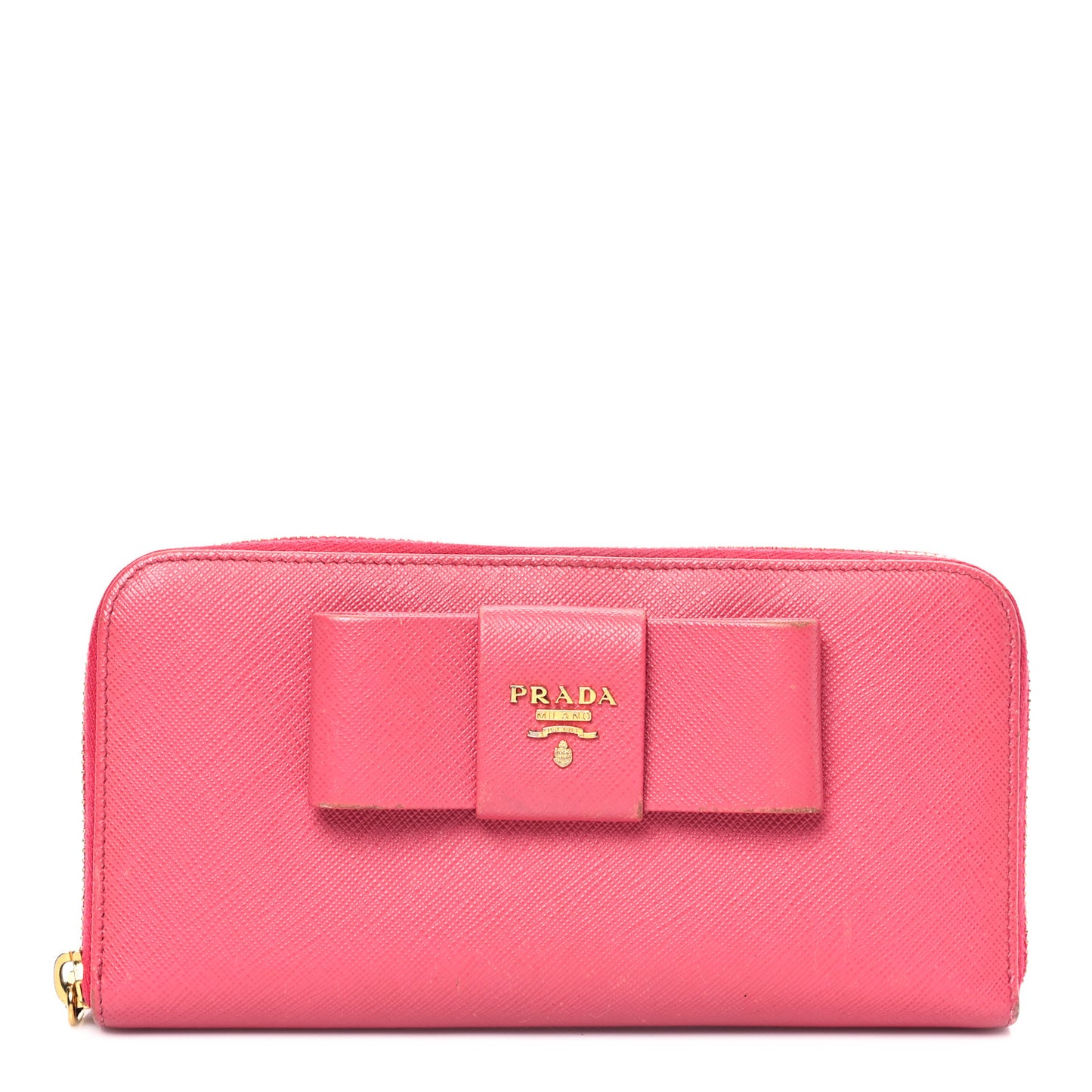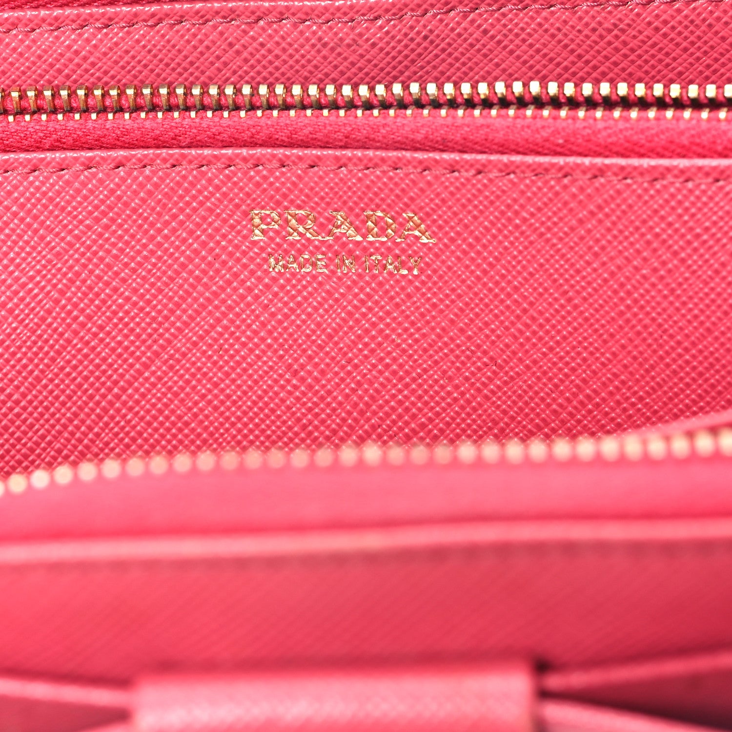 Prada/ Accessories/ Wallets /Prada Saffiano Fiocco Bow Zip Around Wallet Peonia