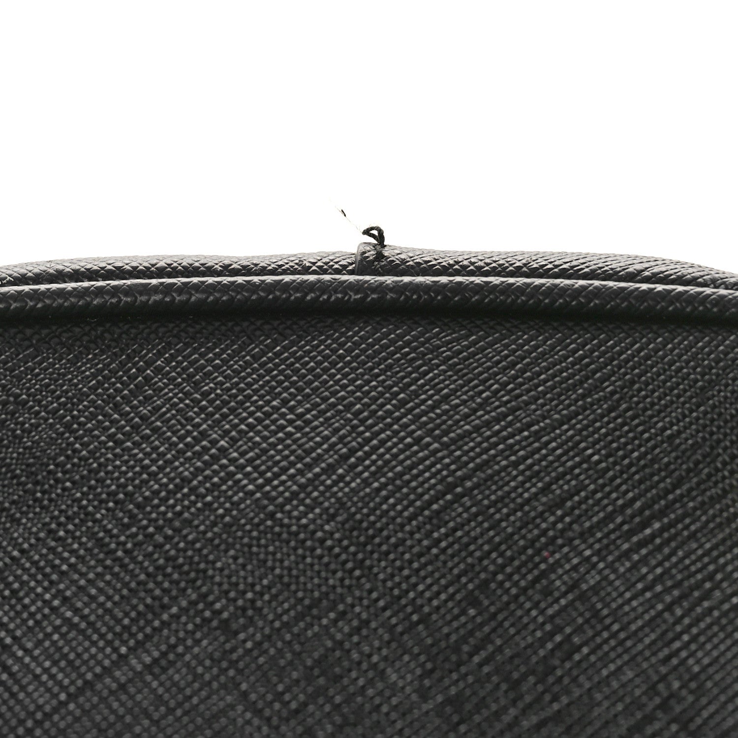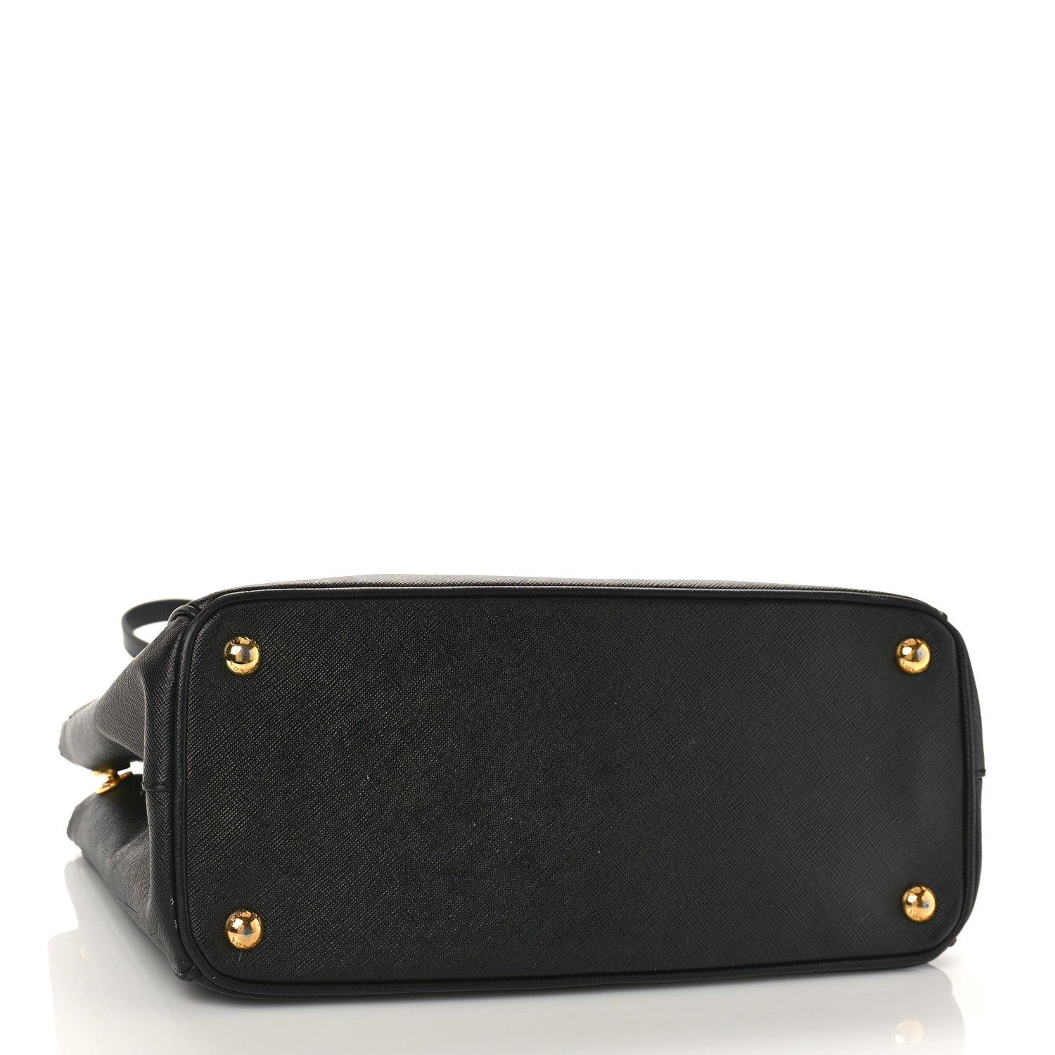 This is an authentic PRADA Saffiano Medium Galleria Double Zip Tote in Black. This chic tote is crafted of Saffiano cross-grain leather in black. The bag features rolled leather top handles with polished brass links, an optional shoulder strap with brass clasps, with a hanging clochette. The top is open and features two full-length side zippered compartments and a black Prada monogram jacquard interior with zipper and patch pockets.Follow this item for alerts. Prada is a registered trademark of Prada. FASHIONPHILE is not affiliated with Prada.