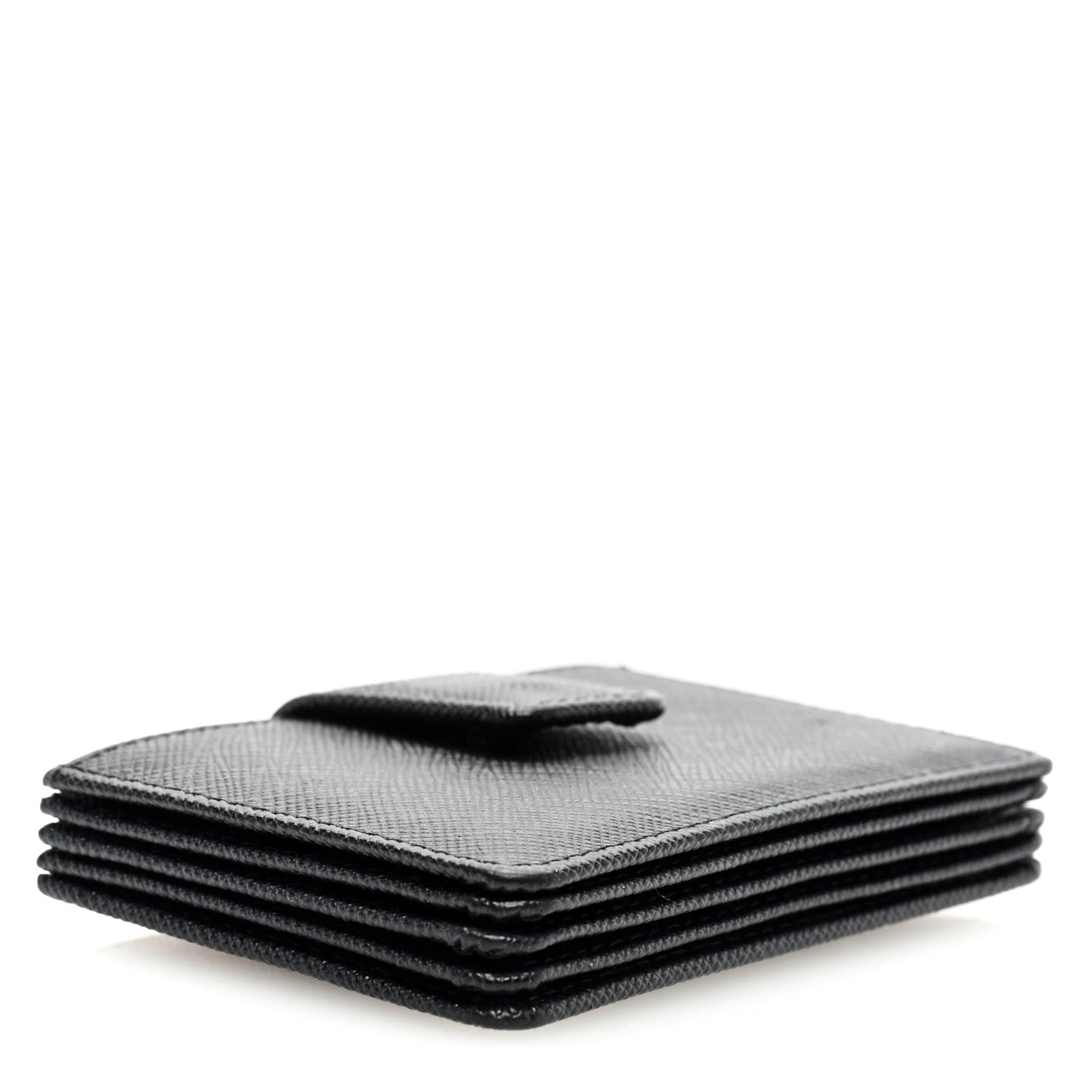 This is an authentic PRADA Saffiano Metal Business Card Holder in Black. This is a chic, compact wallet that is finely crafted of cross-grain leather. The wallet opens with a snap to a matching leather interior.Follow this item for alerts. Prada is a registered trademark of Prada. FASHIONPHILE is not affiliated with Prada.