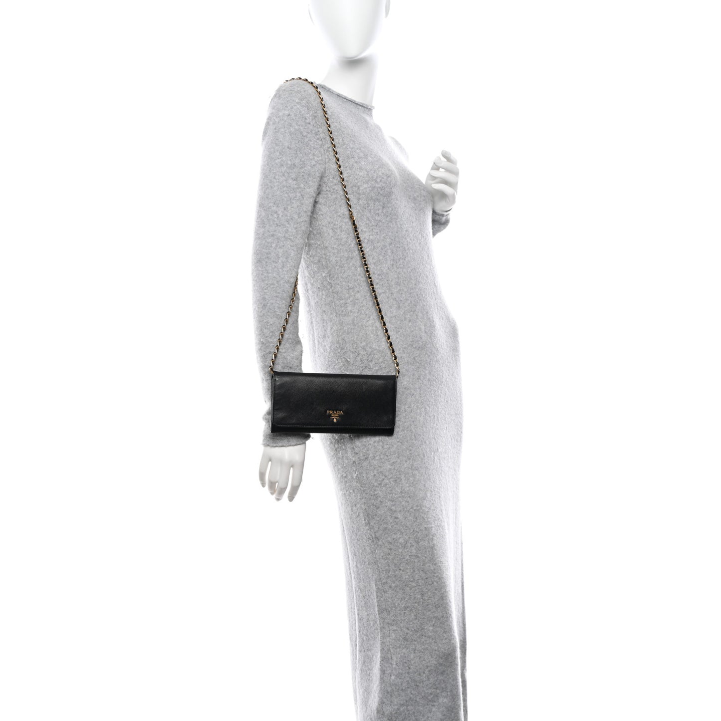 Prada/ Accessories/ Crossbody /Prada Saffiano Metal Oro Chain Wallet Black