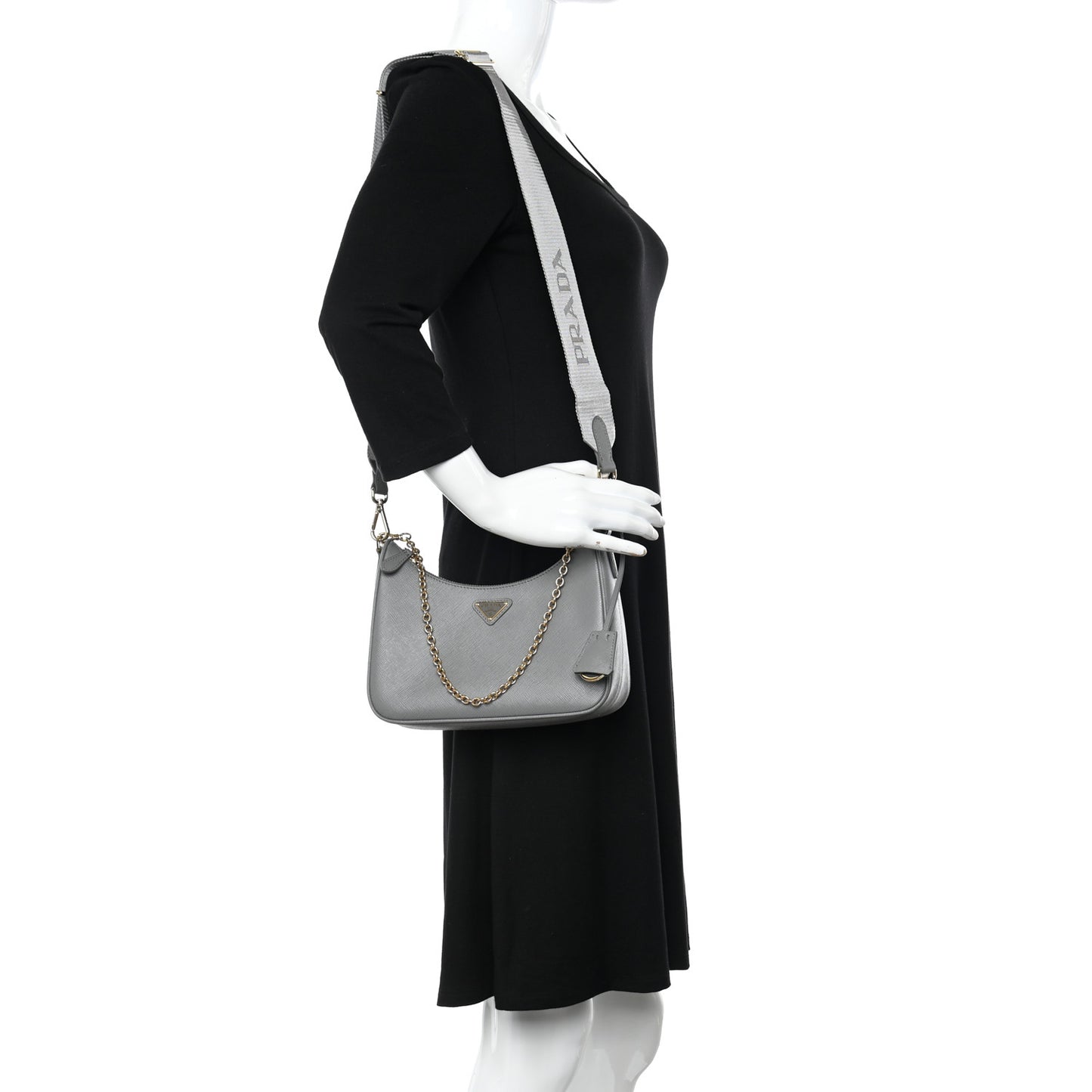 This is an authentic PRADA Saffiano Re-Edition 2005 Shoulder Bag in Ardesia. This bag is crafted of saffiano leather in gray and features an adjustable gray nylon shoulder strap, and a removable coin purse. The top zipper opens to a gray Prada monogram jacquard fabric interior.Follow this item for alerts. Prada is a registered trademark of Prada. FASHIONPHILE is not affiliated with Prada.