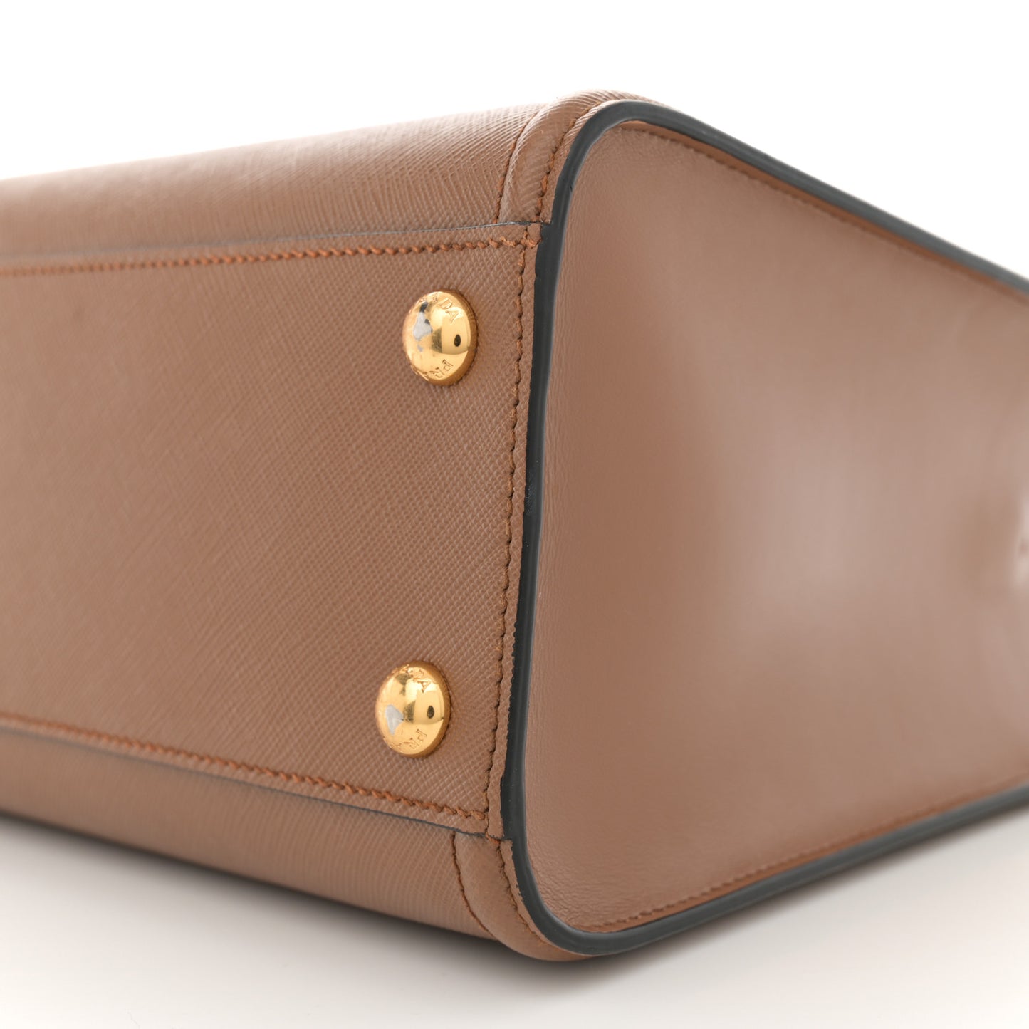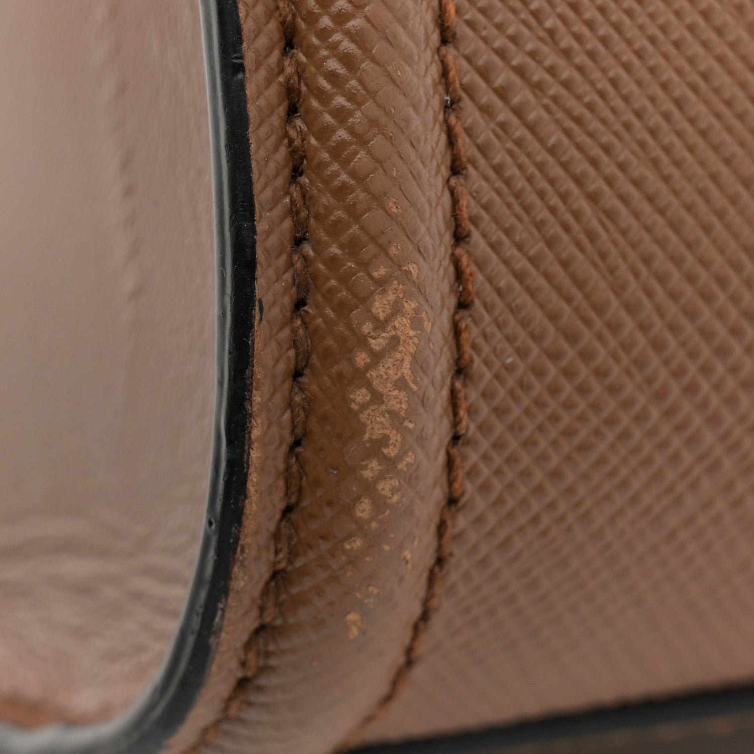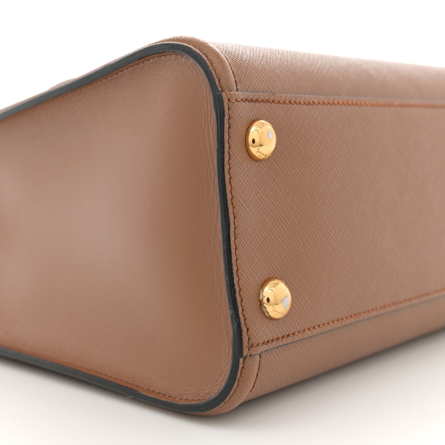 This is an authentic PRADA Saffiano Soft Calfskin Large Tote in Cannella. This tote is crafted of textured crossgrain Saffiano leather in brown. The bag features rolled leather top handles, an optional adjustable shoulder strap, and polished gold hardware. The top magnetic strap opens to a black Prada monogram jacquard fabric interior with zipper and patch pockets.Follow this item for alerts. Prada is a registered trademark of Prada. FASHIONPHILE is not affiliated with Prada.