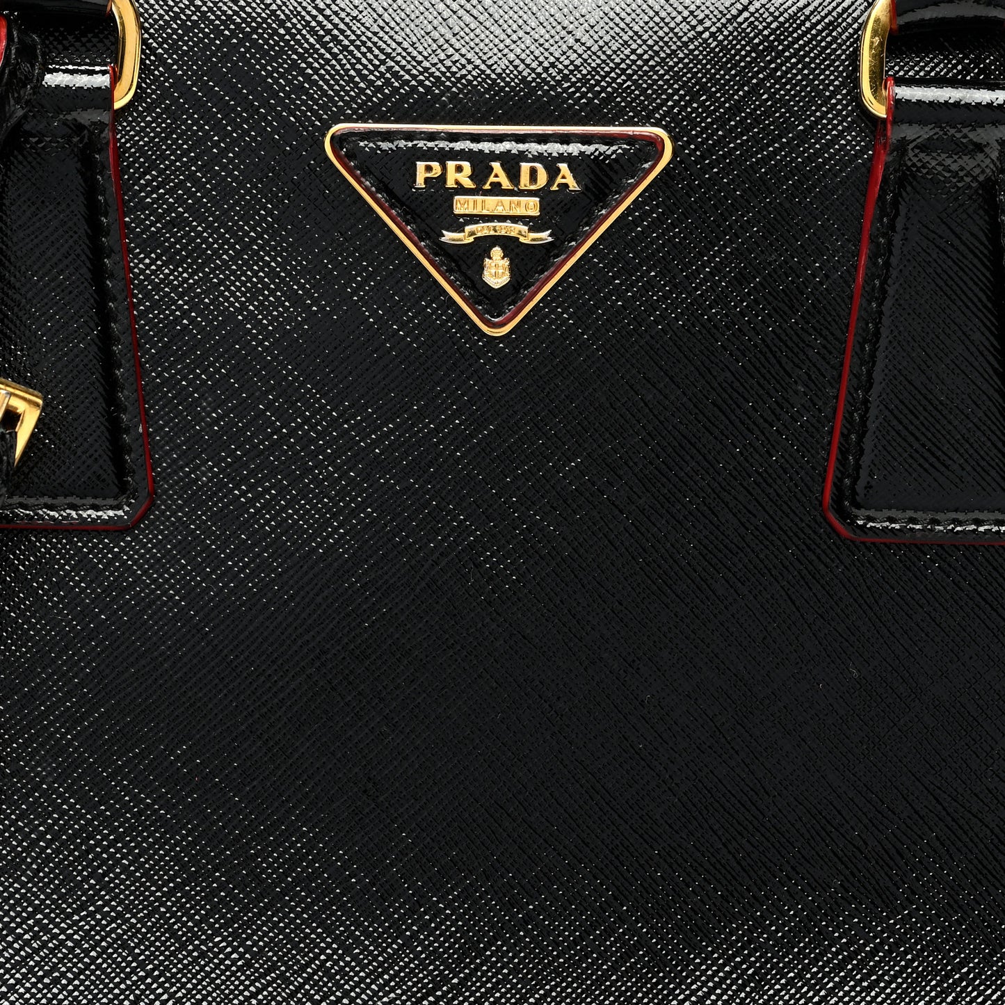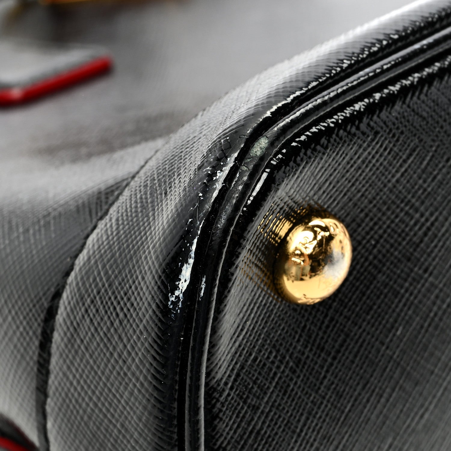 Prada/ Bags/ Shoulder Bags /Prada Saffiano Vernice Small Promenade Tote Black Rosso