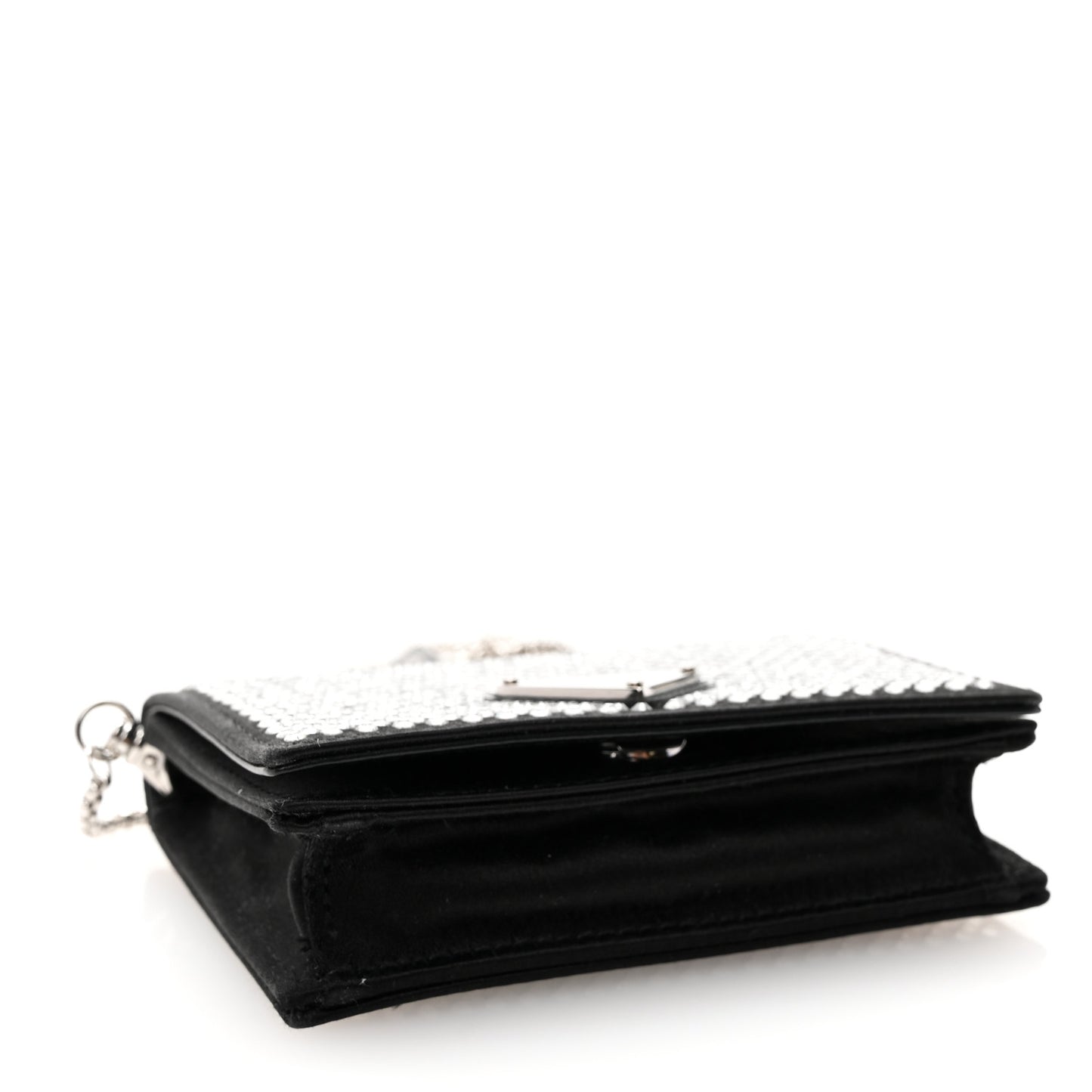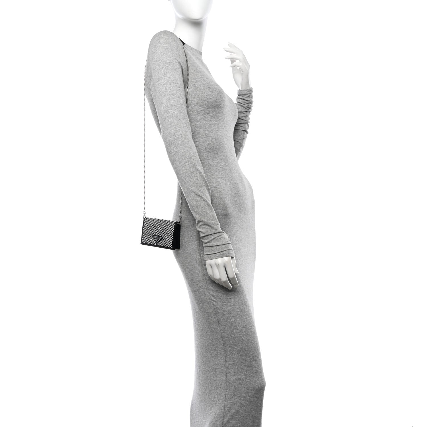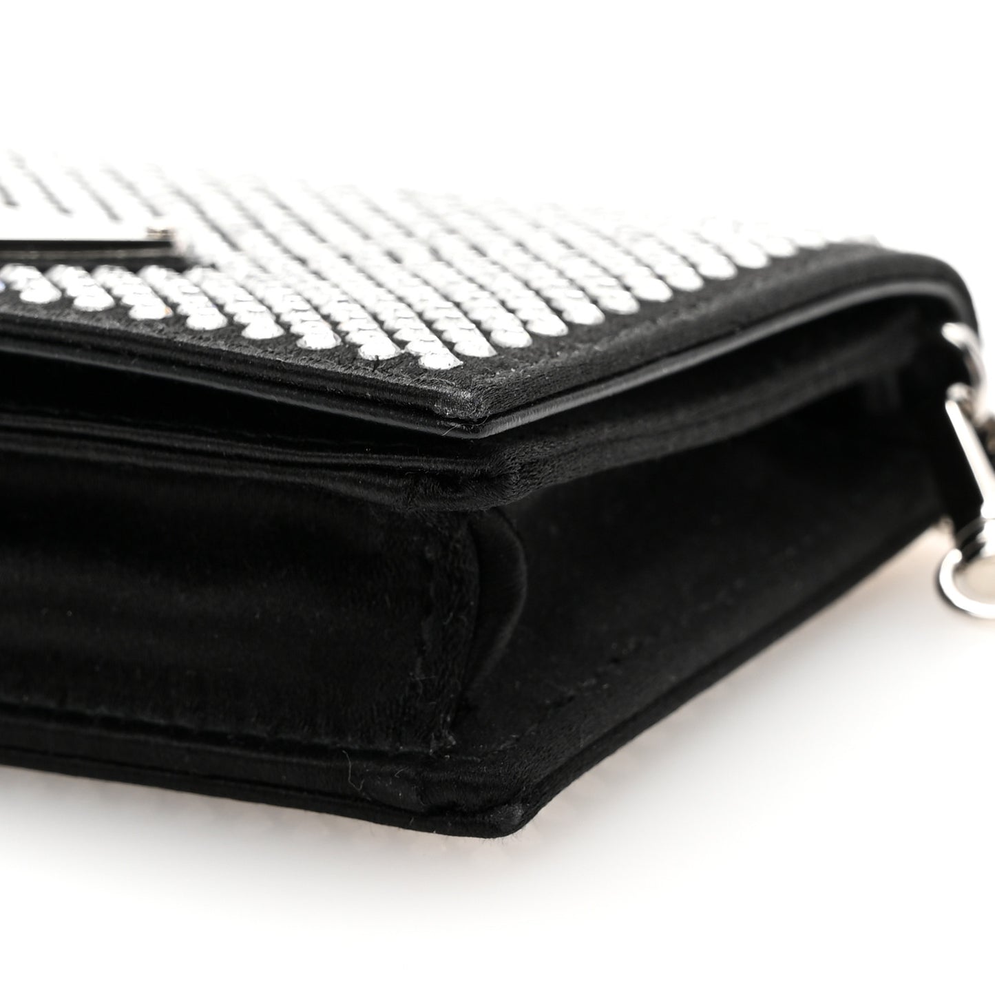 Prada/ Accessories/ Clutch & Evening /Prada Satin Crystal Metal Triangle Logo Card Holder With Strap Cristal