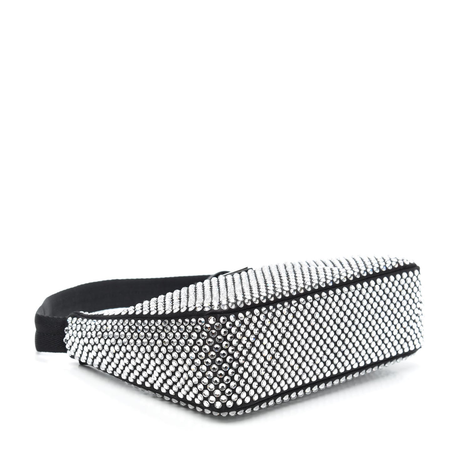 This is an authentic PRADA Satin Crystal Mini Re-Edition 2000 Bag in Black. This Prada handbag is crafted of crystal embellished satin with silver hardware. The bag features a nylon shoulder strap and the top zipper opens to a black fabric interior.Follow this item for alerts. Prada is a registered trademark of Prada. FASHIONPHILE is not affiliated with Prada.