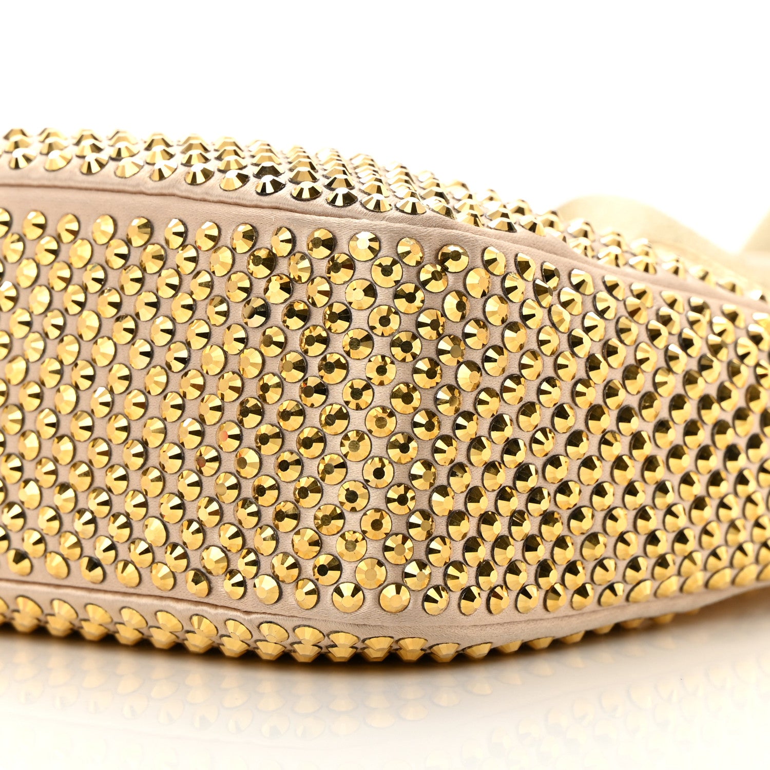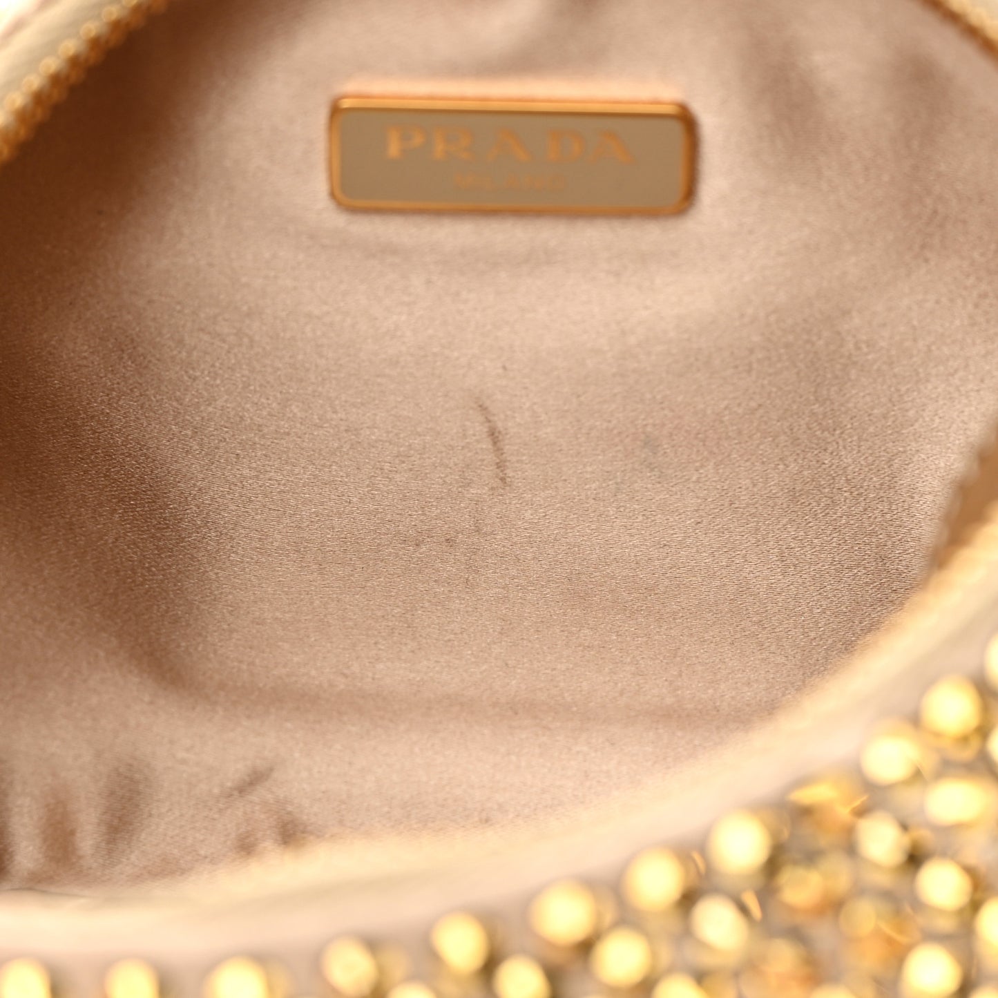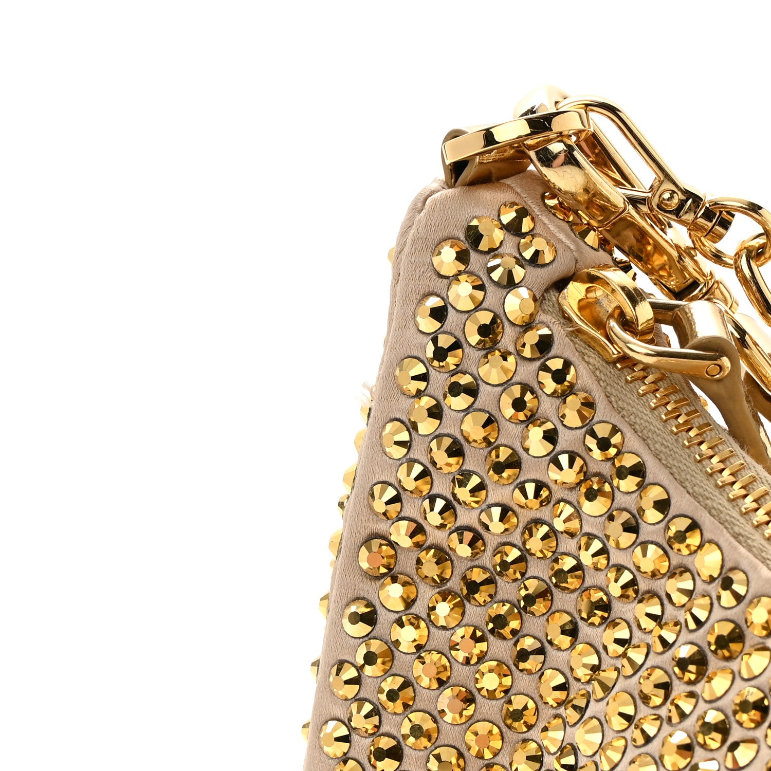 This is an authentic PRADA Satin Crystal Re-Edition 2005 Shoulder Bag in Platino. This Prada handbag is crafted of crystal-embellished satin with gold hardware. The bag features a nylon shoulder strap and the top zipper opens to a beige fabric interior.Follow this item for alerts. Prada is a registered trademark of Prada. FASHIONPHILE is not affiliated with Prada.