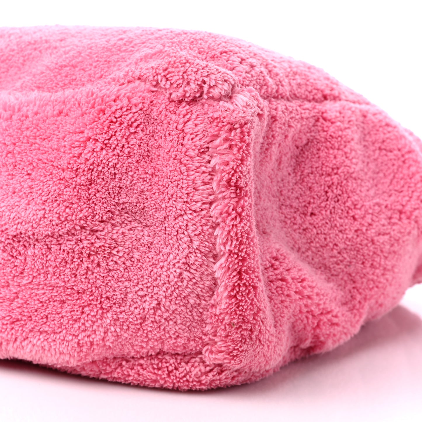 This is an authentic PRADA Terry Cloth Logo Tote in Petalo and Black. This Prada handbag is crafted of pink terry cloth. The bag features shearling shoulder straps and opens to a black jacquard fabric interior.Follow this item for alerts. Prada is a registered trademark of Prada. FASHIONPHILE is not affiliated with Prada.
