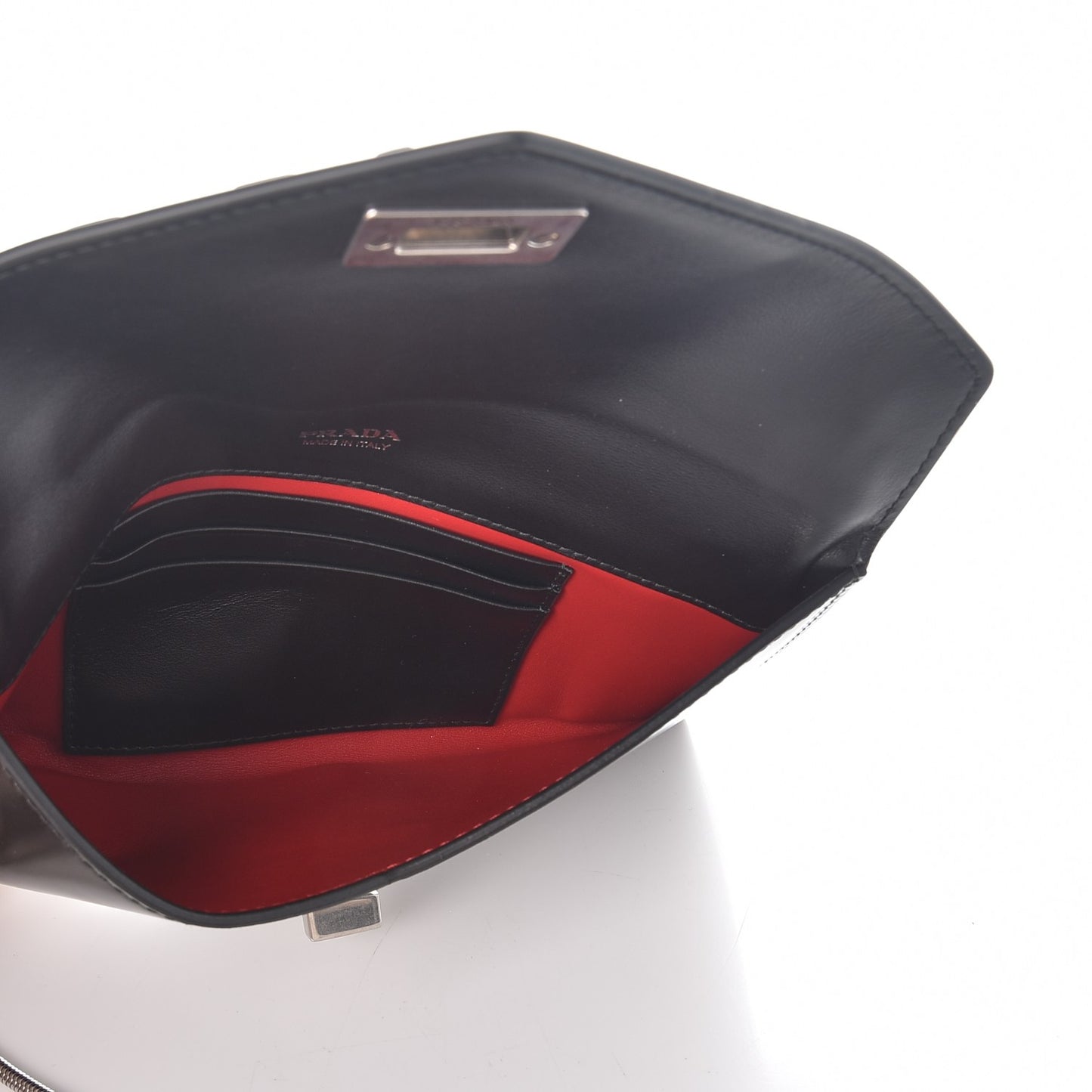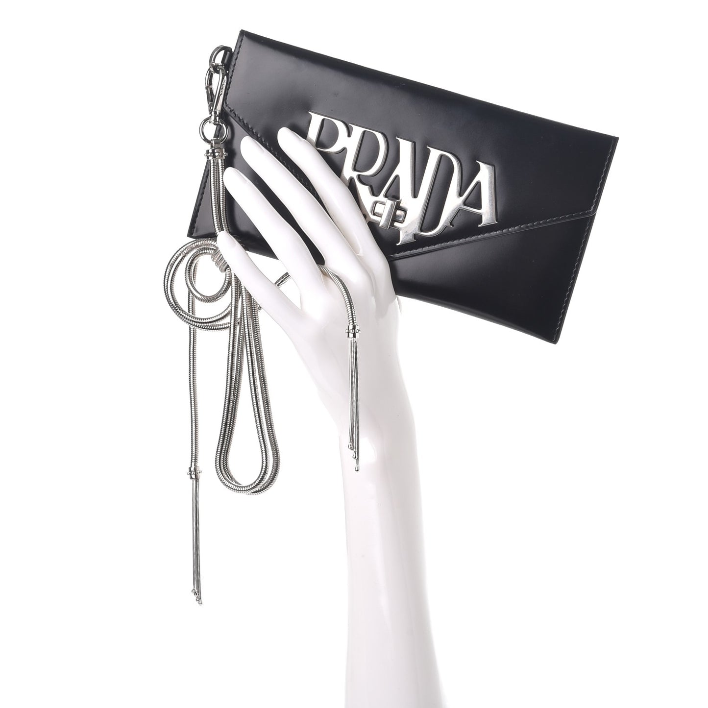 Prada/ Bags/ Clutch & Evening /Prada Spazzolato Logo Envelope Clutch Nero Black