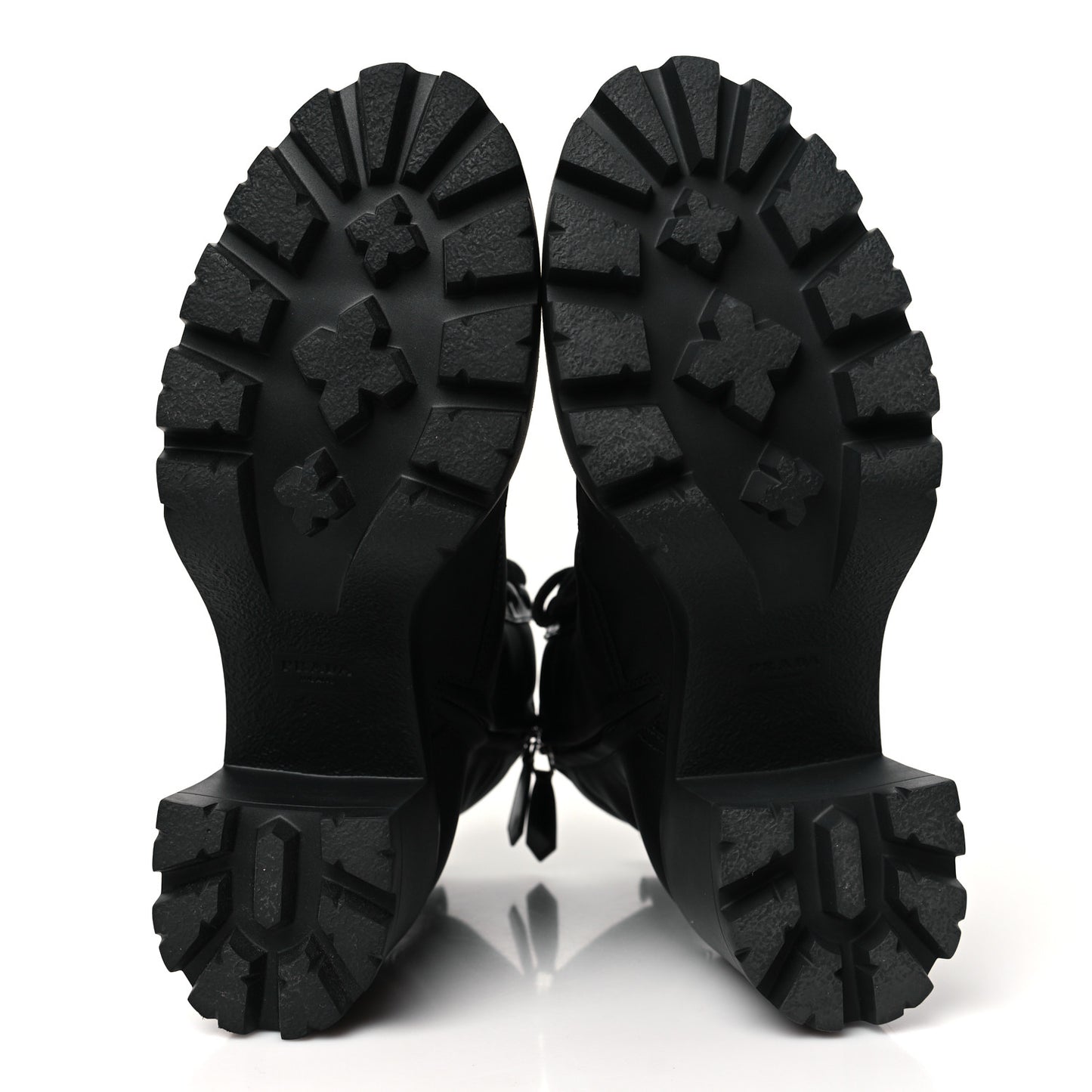Prada/ Accessories/ Shoes /Prada Spazzolato Re-Nylon Metal Triangle Logo Lace Up 55mm Ankle Boots 39 Black