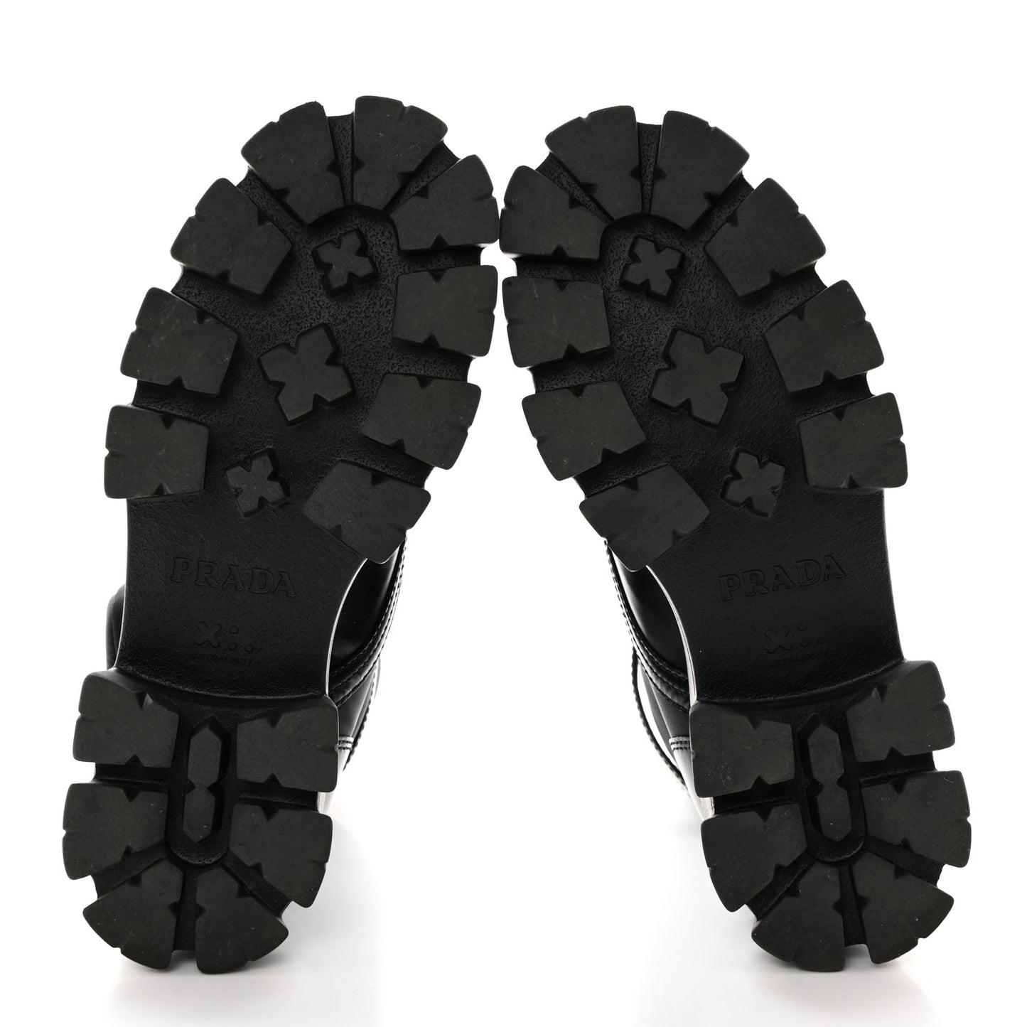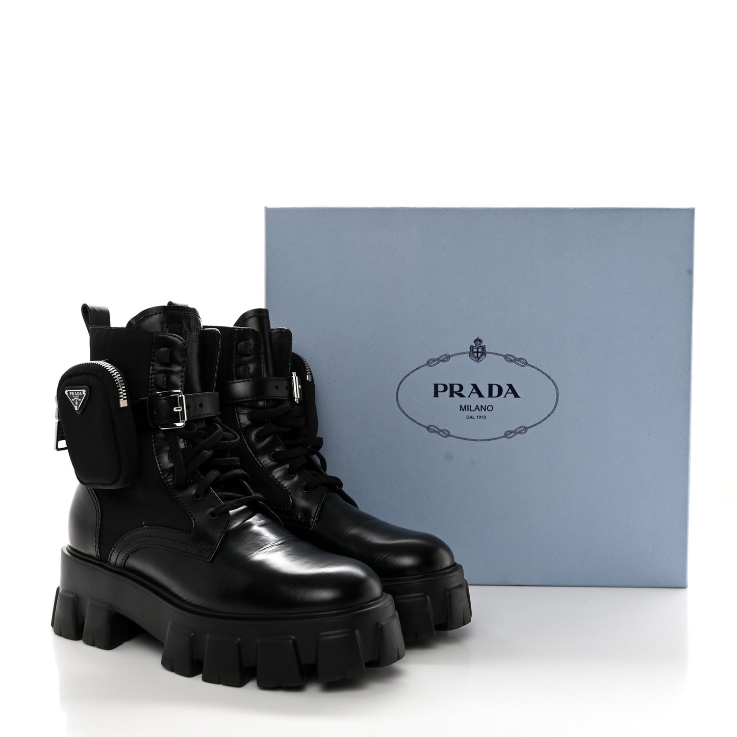 Prada/ Accessories/ Shoes /Prada Spazzolato Rois Nylon Metal Triangle Logo Monolith Pouch Pocket 55mm Boots 40 Black