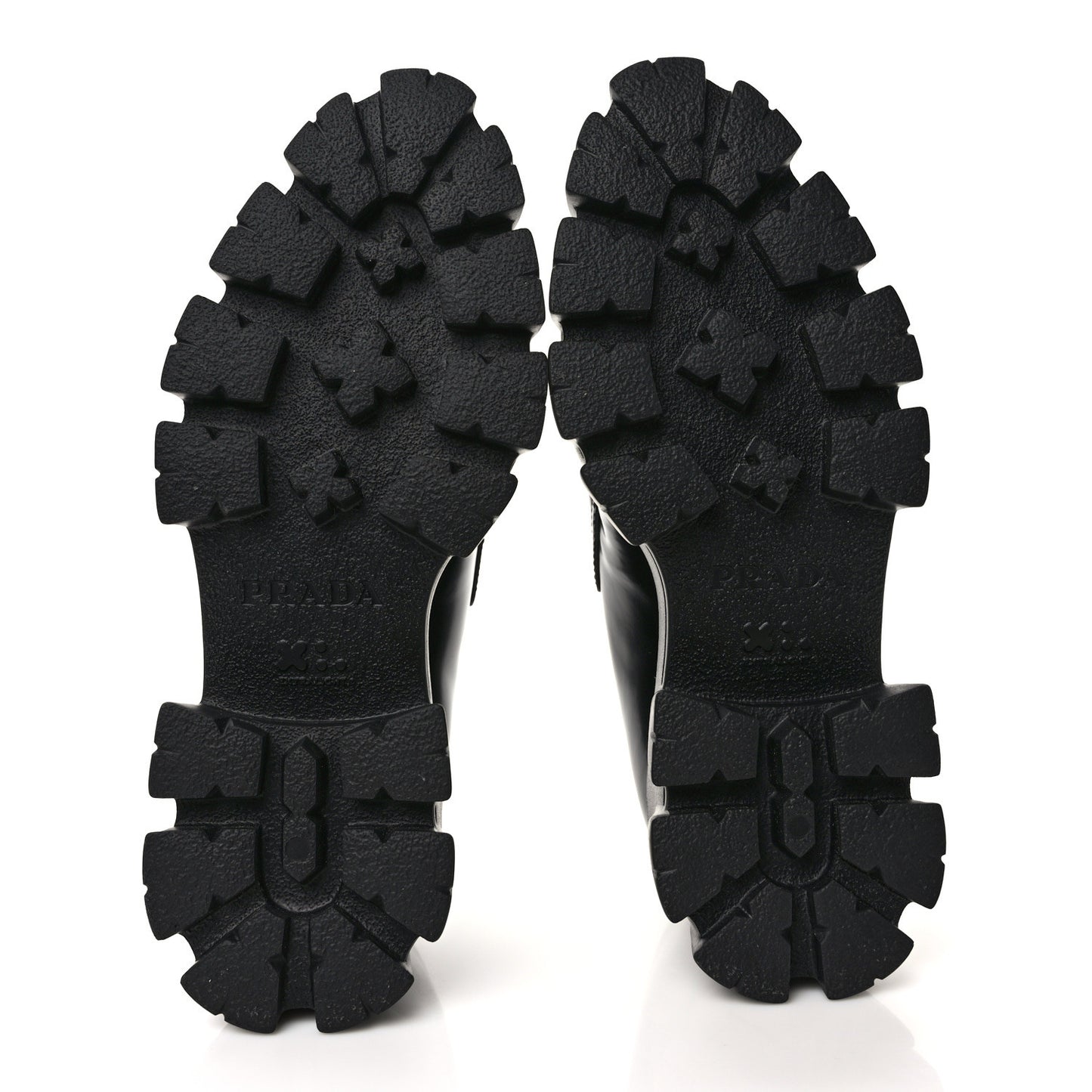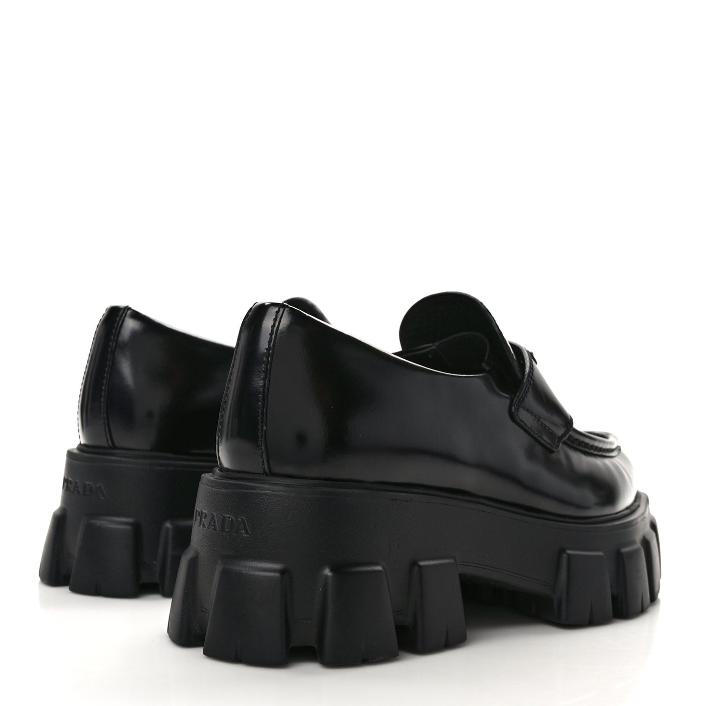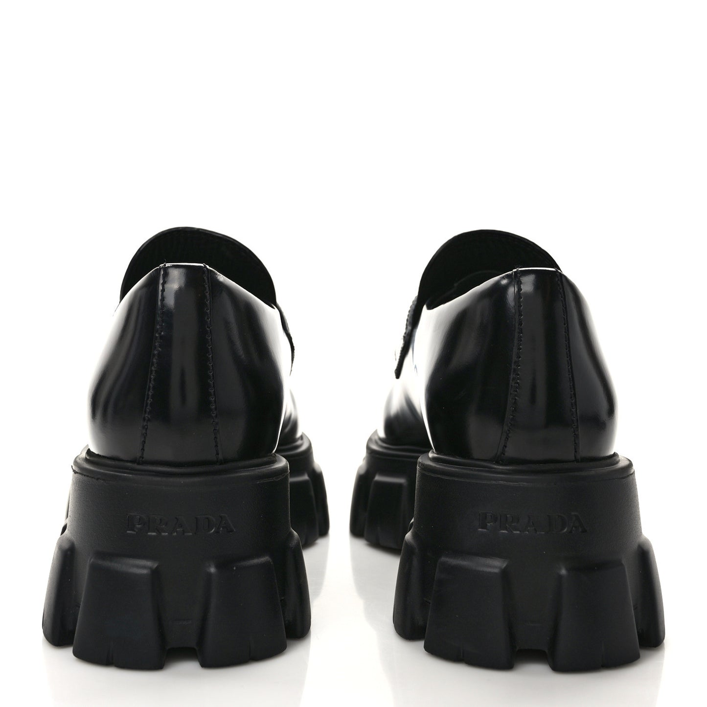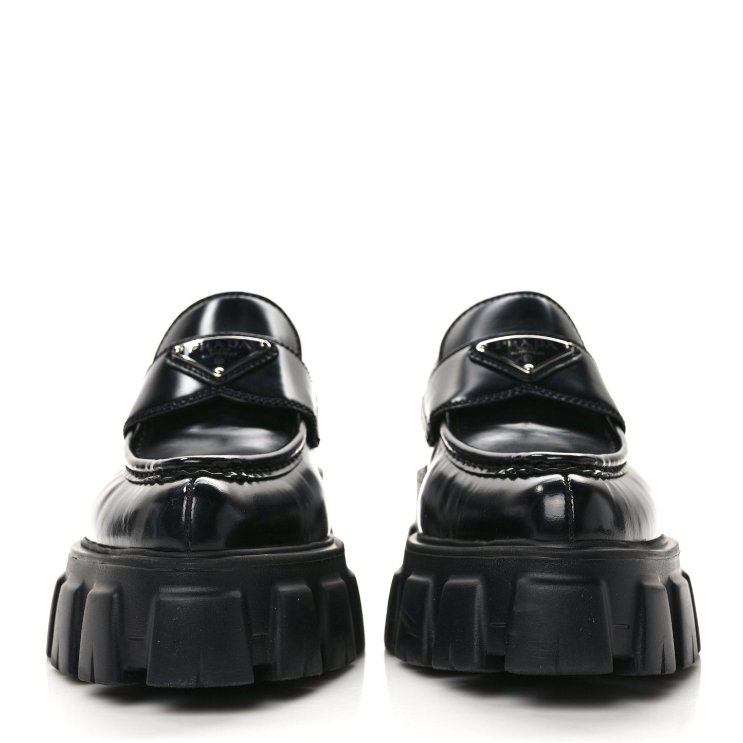 Prada/ Accessories/ Shoes /Prada Spazzolato Triangle Logo Monolith Pointy 55mm Loafers 38 Black
