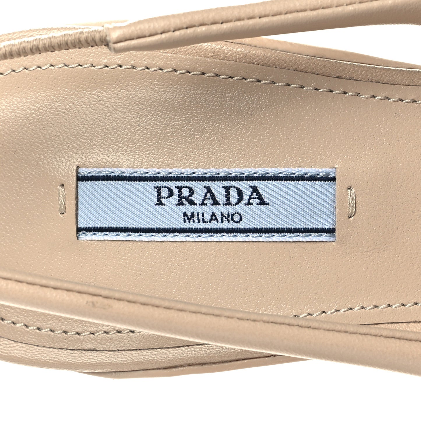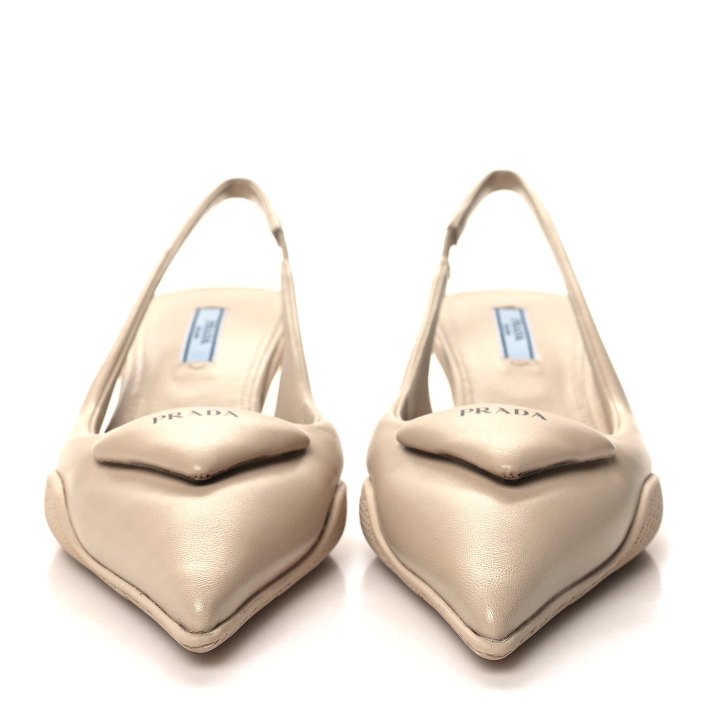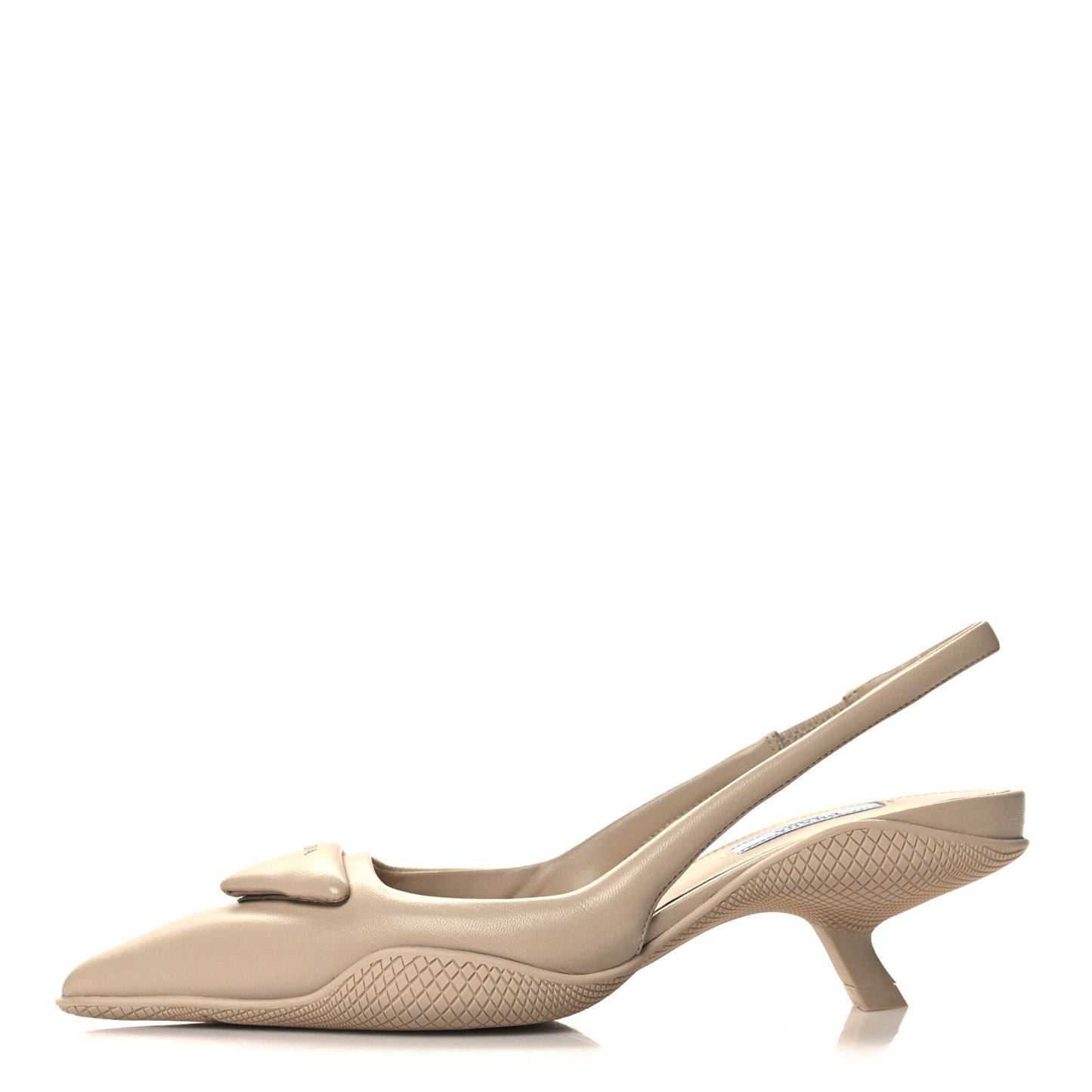 Prada/ Accessories/ Shoes /Prada Spazzolato Triangle Logo Pointed Toe 45mm Slingback Pumps 36 Deserto