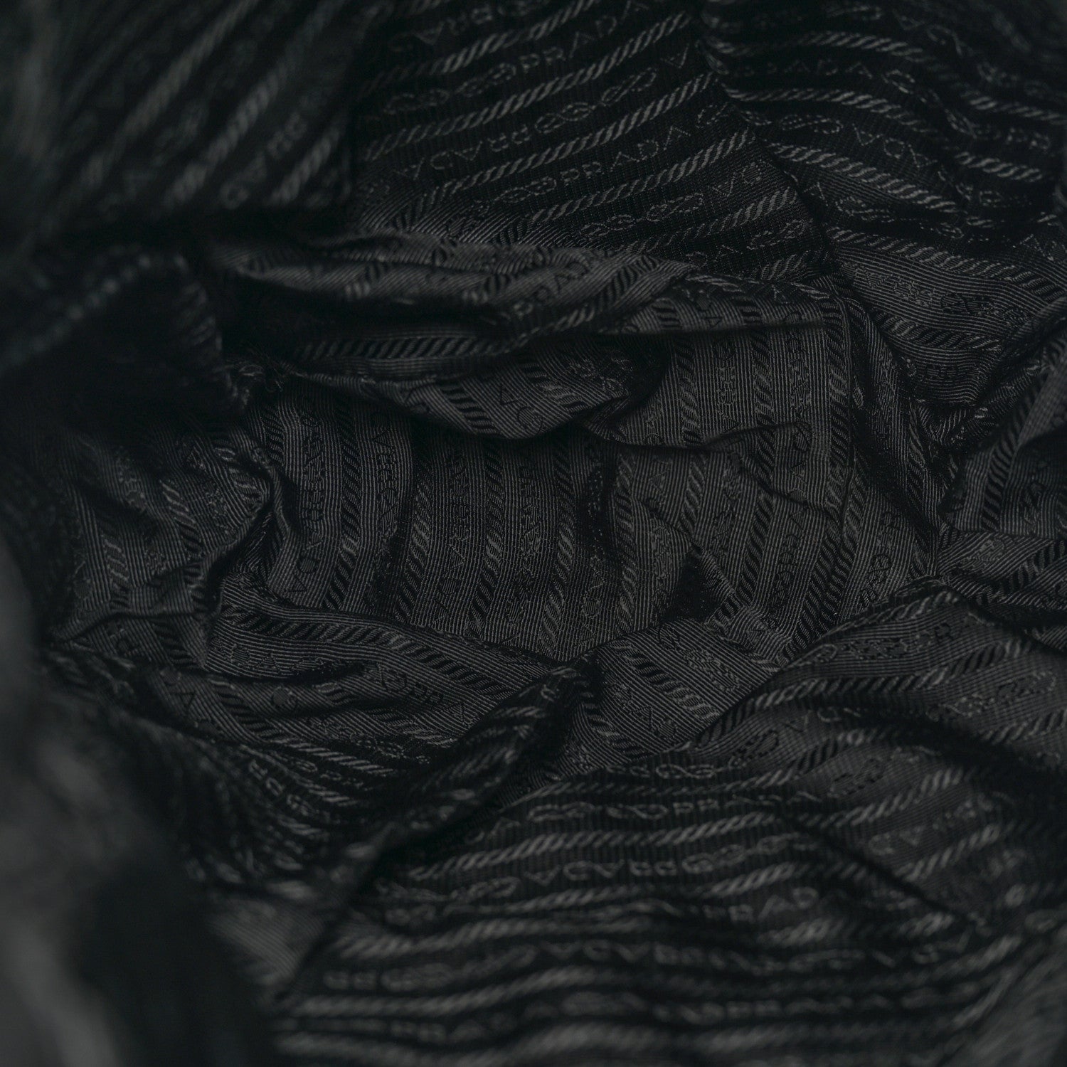 This is an authentic PRADA Tessuto Nylon Gaufre Tote in Black. This stylish tote is crafted of multi pleated, multi-tiered tessuto nylon in black. The bag features black leather trim including rolled top handles with silver links and buckles. The top opens to a spacious black Prada monogrammed fabric interior with zipper and patch pockets.Follow this item for alerts. Prada is a registered trademark of Prada. FASHIONPHILE is not affiliated with Prada.
