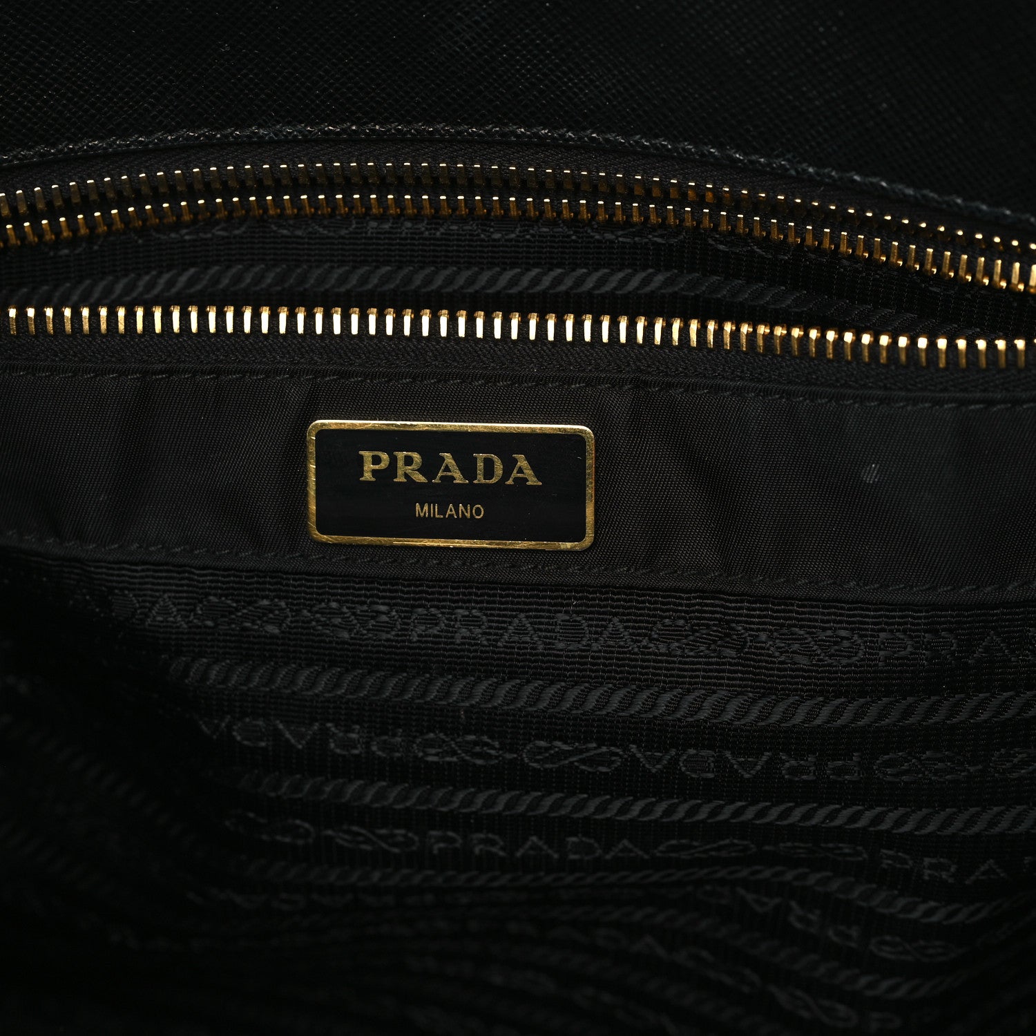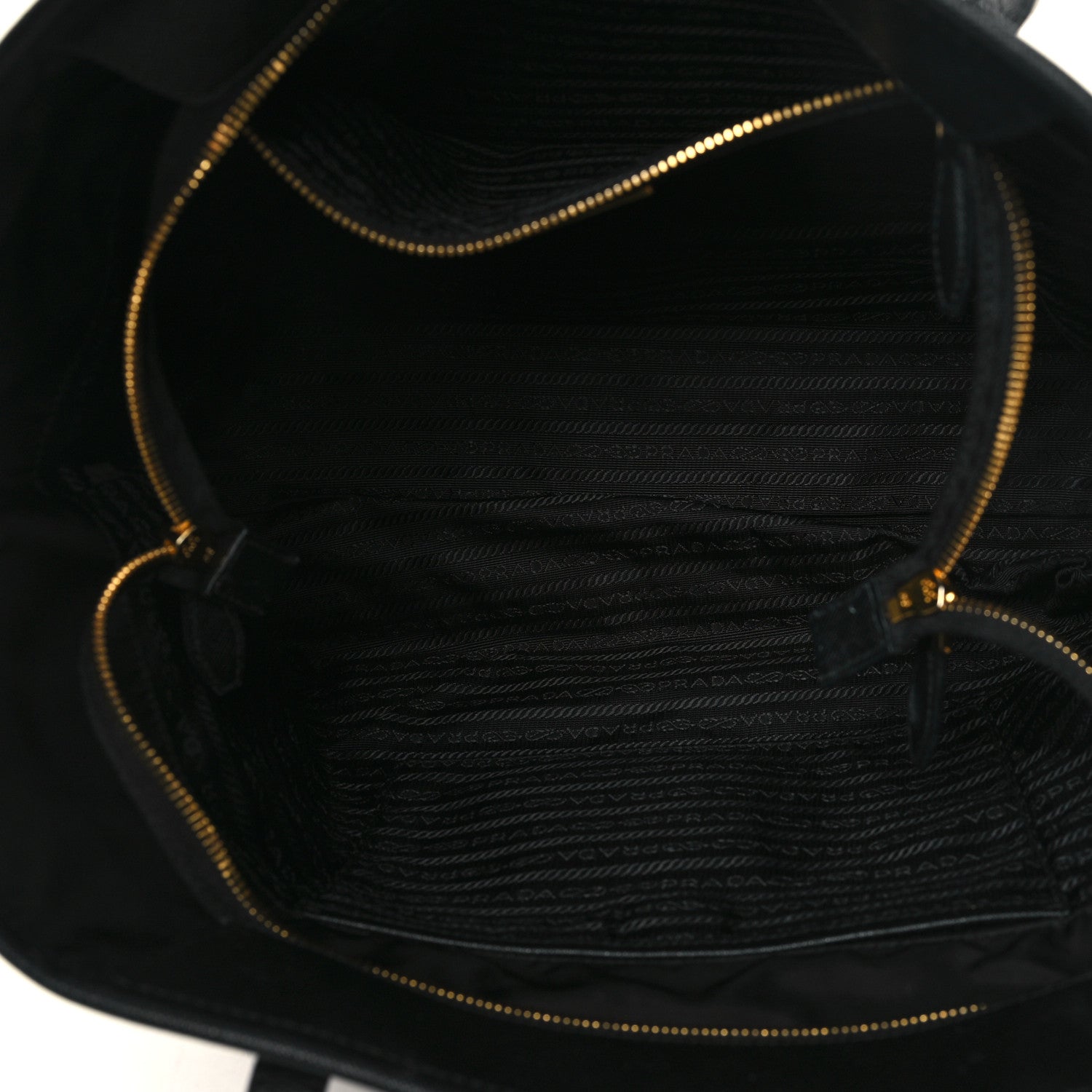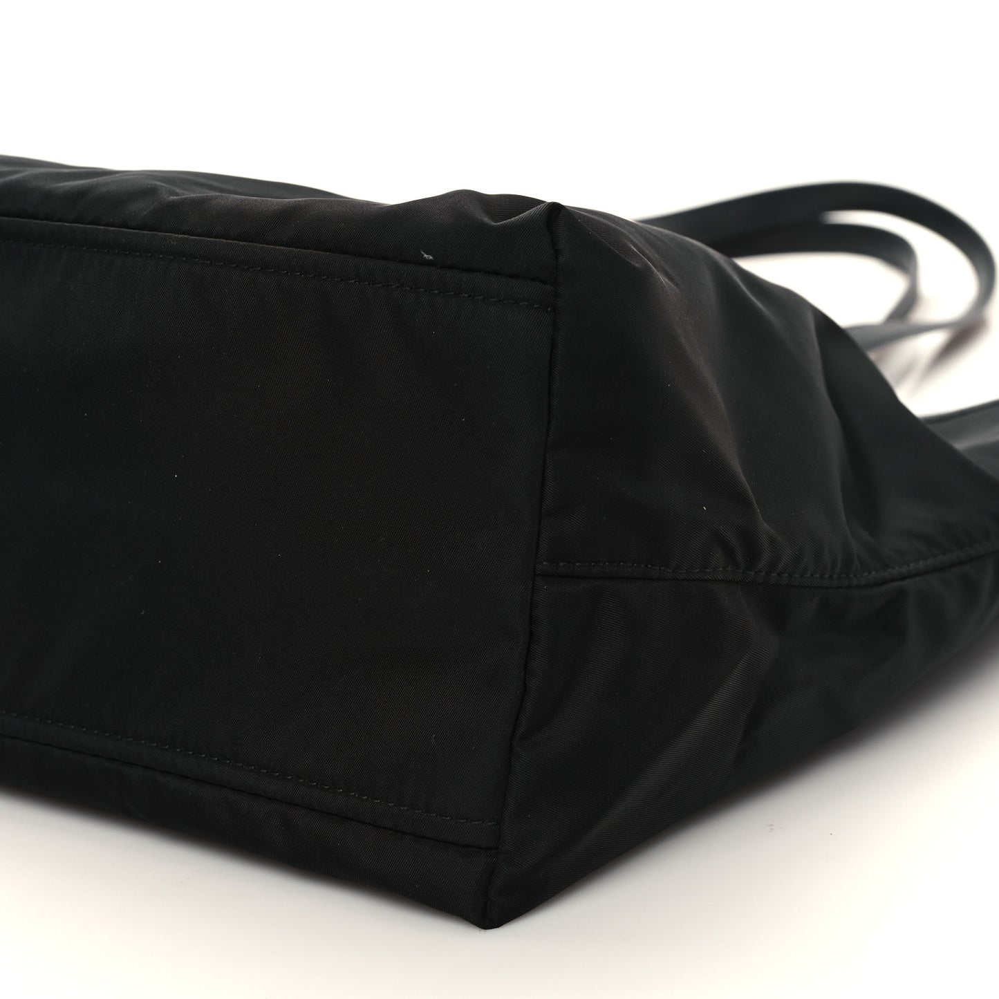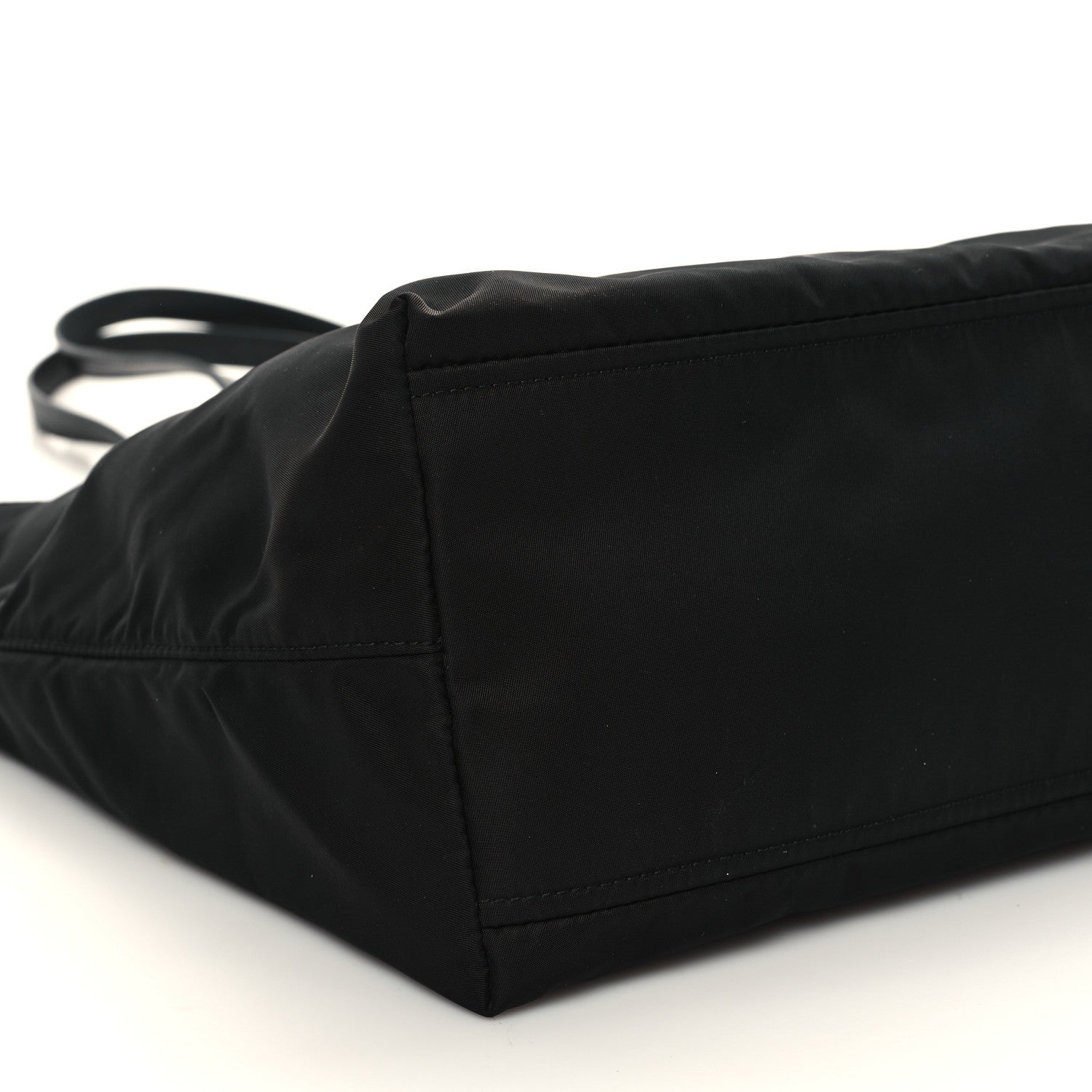 This is an authentic PRADA Tessuto Nylon Logo Tote in Black. This chic tote is crafted of tessuto nylon in black. The bag features leather handles and gold hardware. The zip top opens to a black Prada monogram jacquard fabric interior with a zipper pocket.Follow this item for alerts. Prada is a registered trademark of Prada. FASHIONPHILE is not affiliated with Prada.