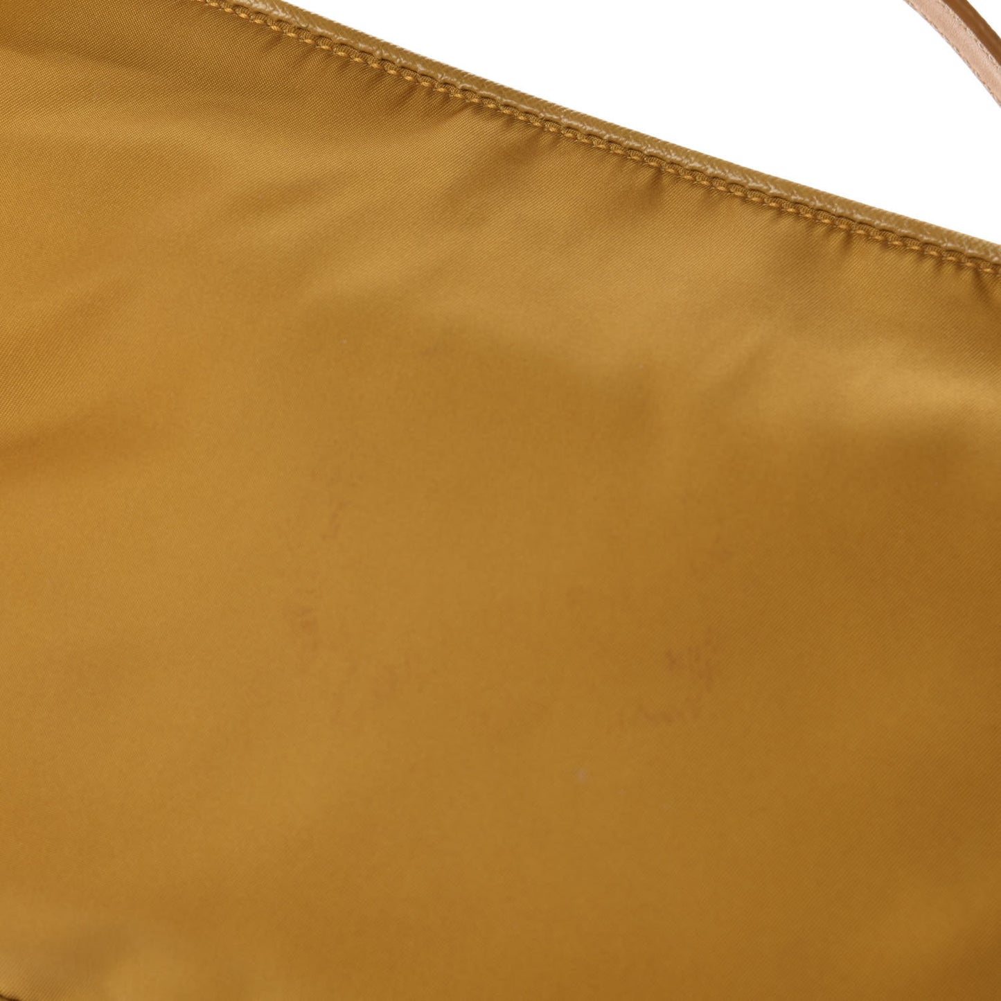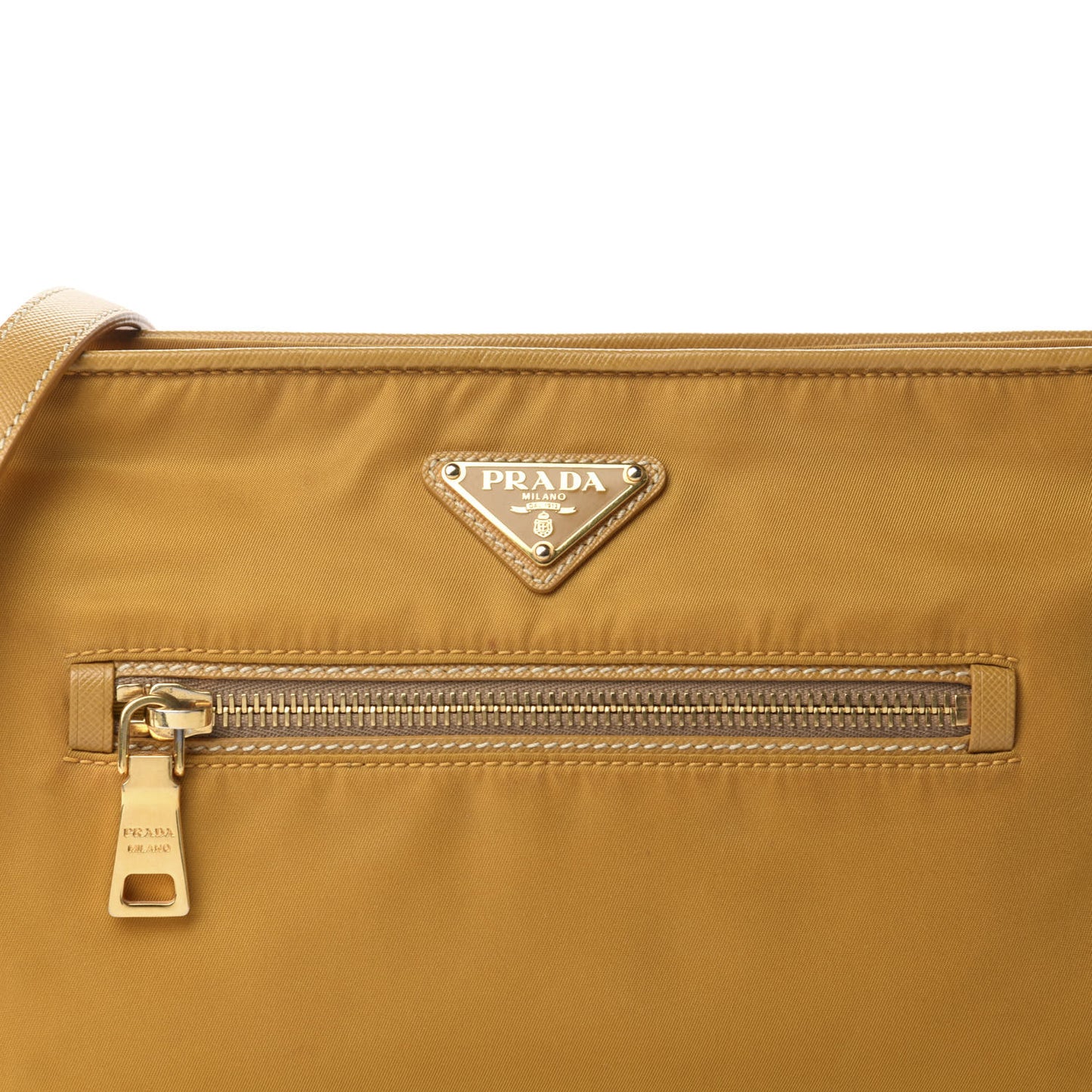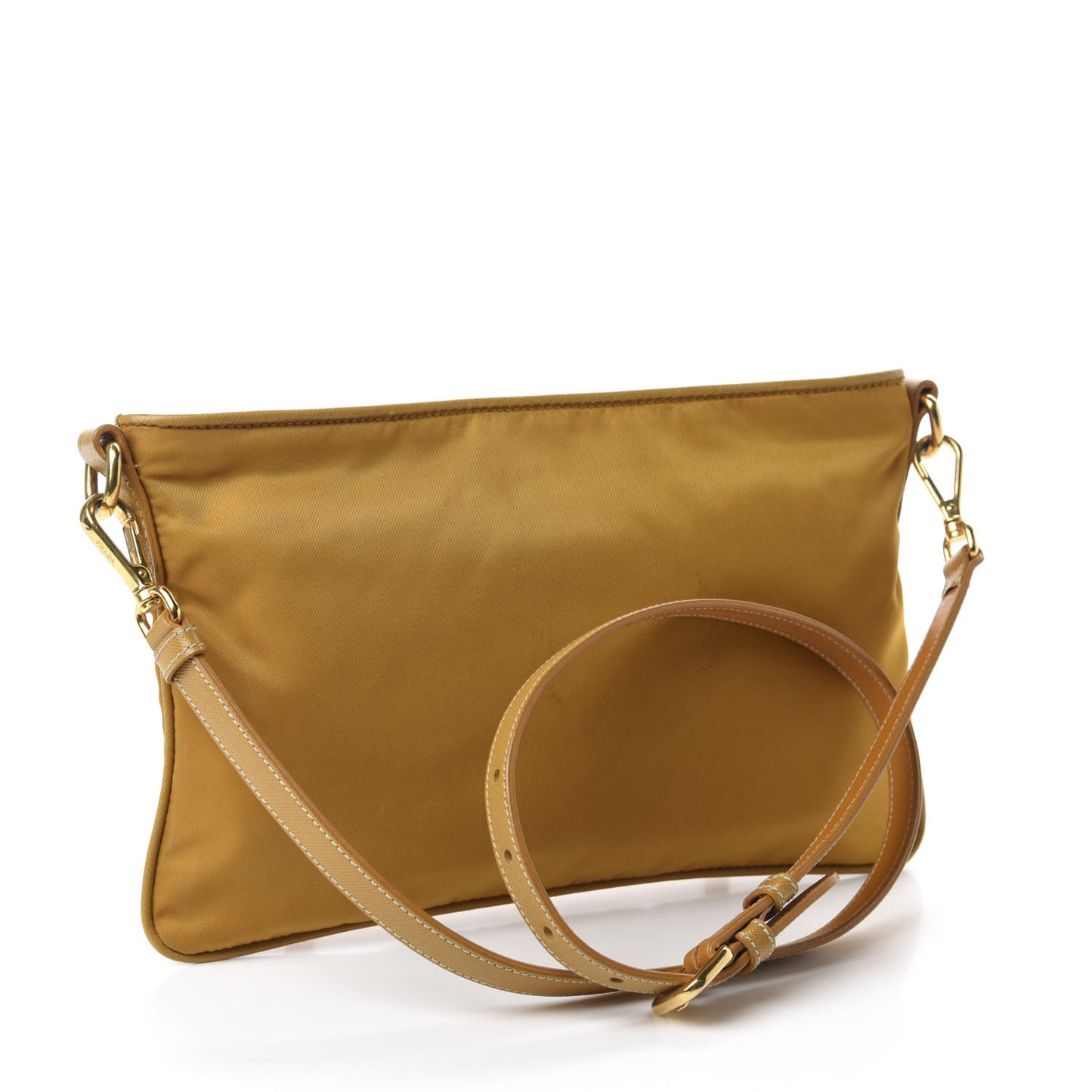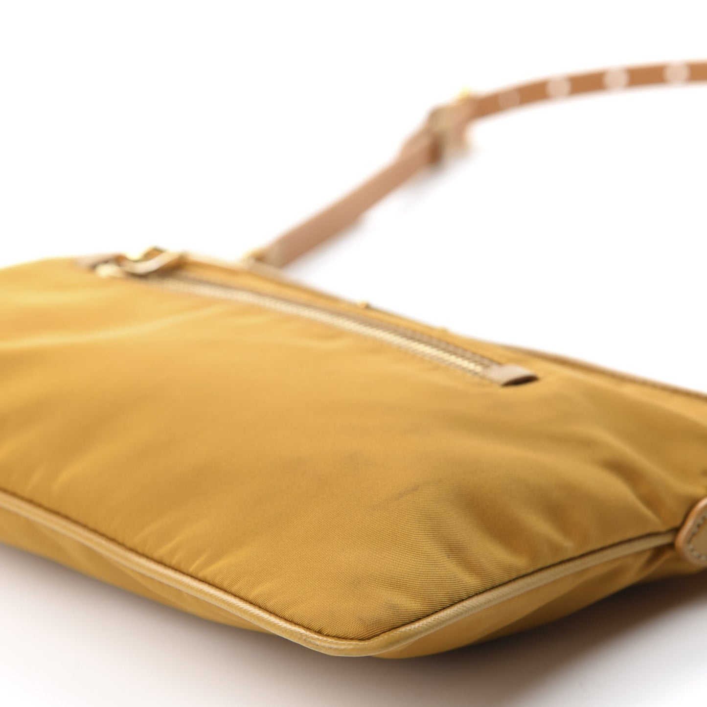 This is an authentic PRADA Tessuto Nylon Saffiano Crossbody Bag in Senape. This stylish shoulder bag is crafted of dark yellow nylon with matching leather trim. It features an adjustable leather shoulder strap, gold hardware, and a front zipper pocket with a Prada logo above it. The top zipper opens to a dark yellow Prada monogram jacquard fabric interior. This is a stylish shoulder bag for everyday use, from Prada!Follow this item for alerts. Prada is a registered trademark of Prada. FASHIONPHILE is not affiliated with Prada.