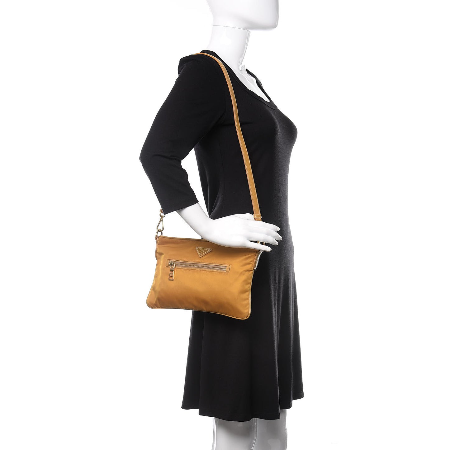 Tessuto Nylon Saffiano Crossbody Bag Senape