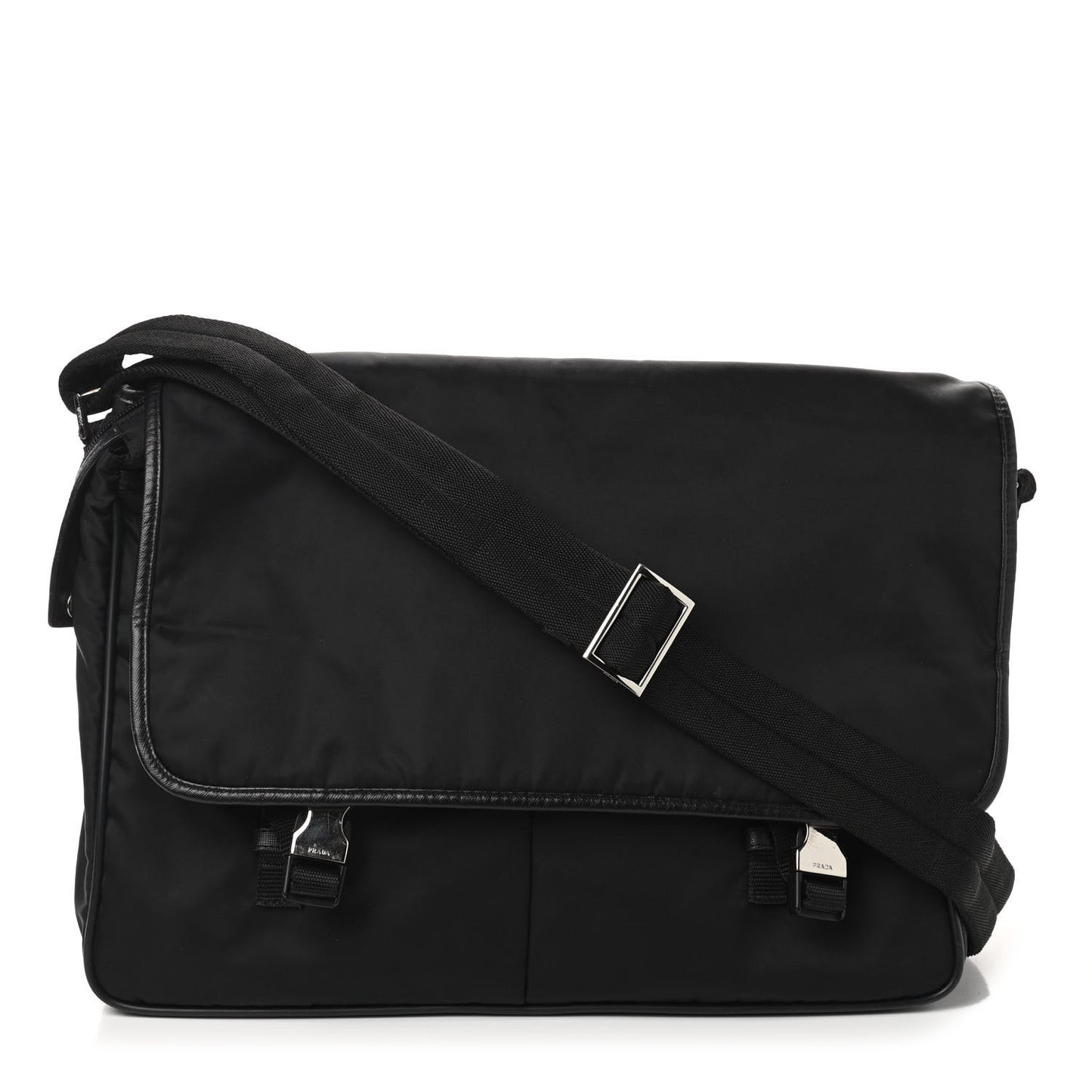 Prada/ Bags/ Shoulder Bags /Prada Tessuto Nylon Saffiano Logo Messenger Bag Black