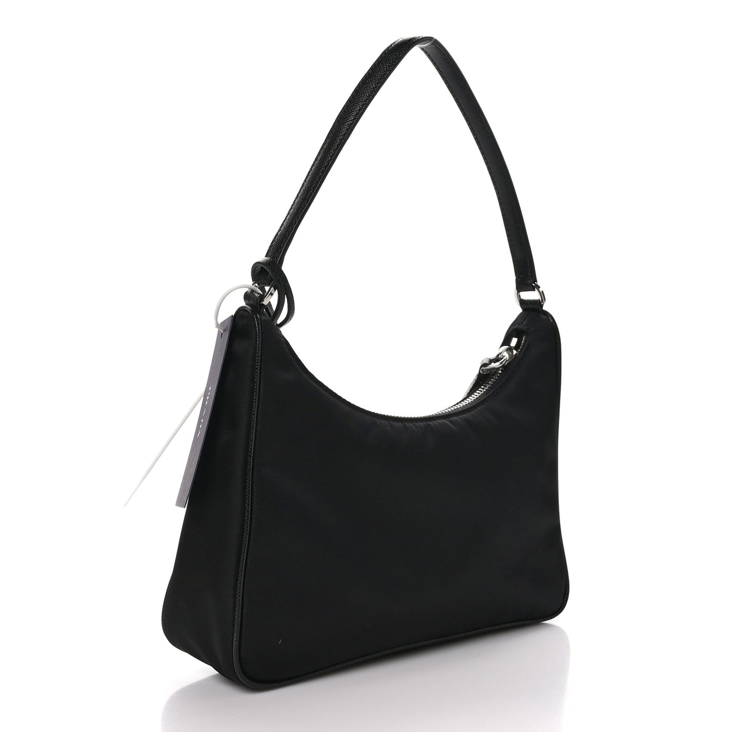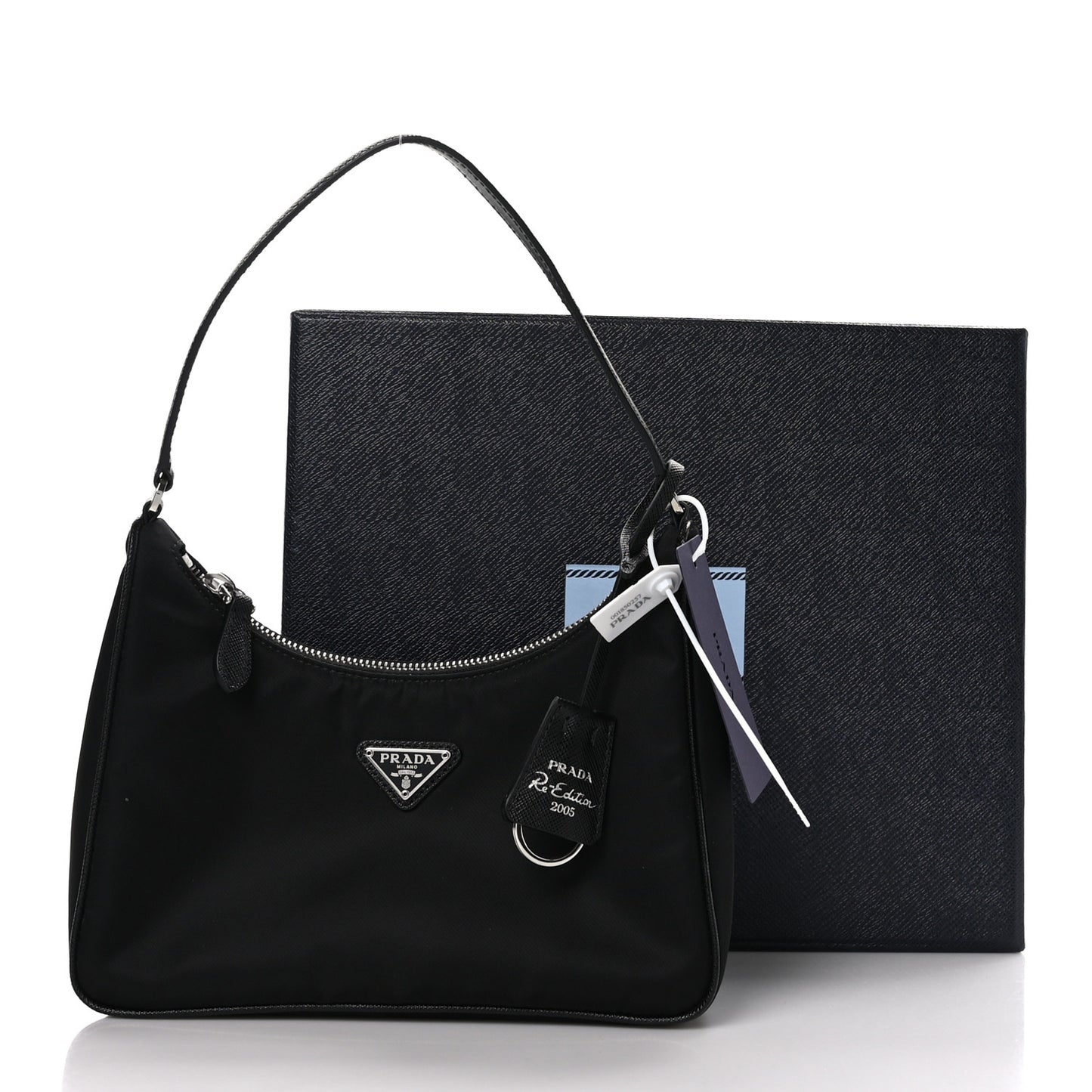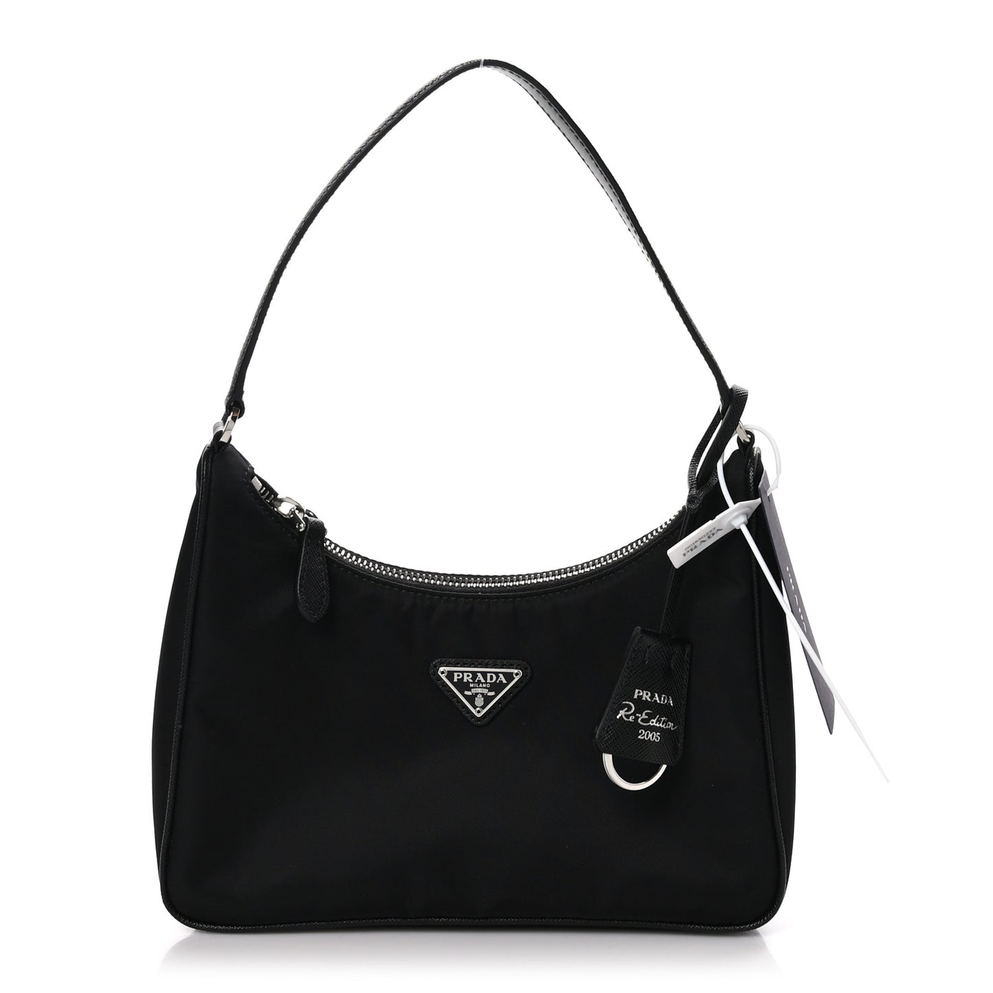 This is an authentic PRADA Tessuto Nylon Saffiano Mini Re-Edition 2005 Bag in Black. This handbag is crafted of sturdy black tessuto nylon. It features a black leather shoulder strap and a silver top zipper that opens to a black jacquard fabric interior.Follow this item for alerts. Prada is a registered trademark of Prada. FASHIONPHILE is not affiliated with Prada.