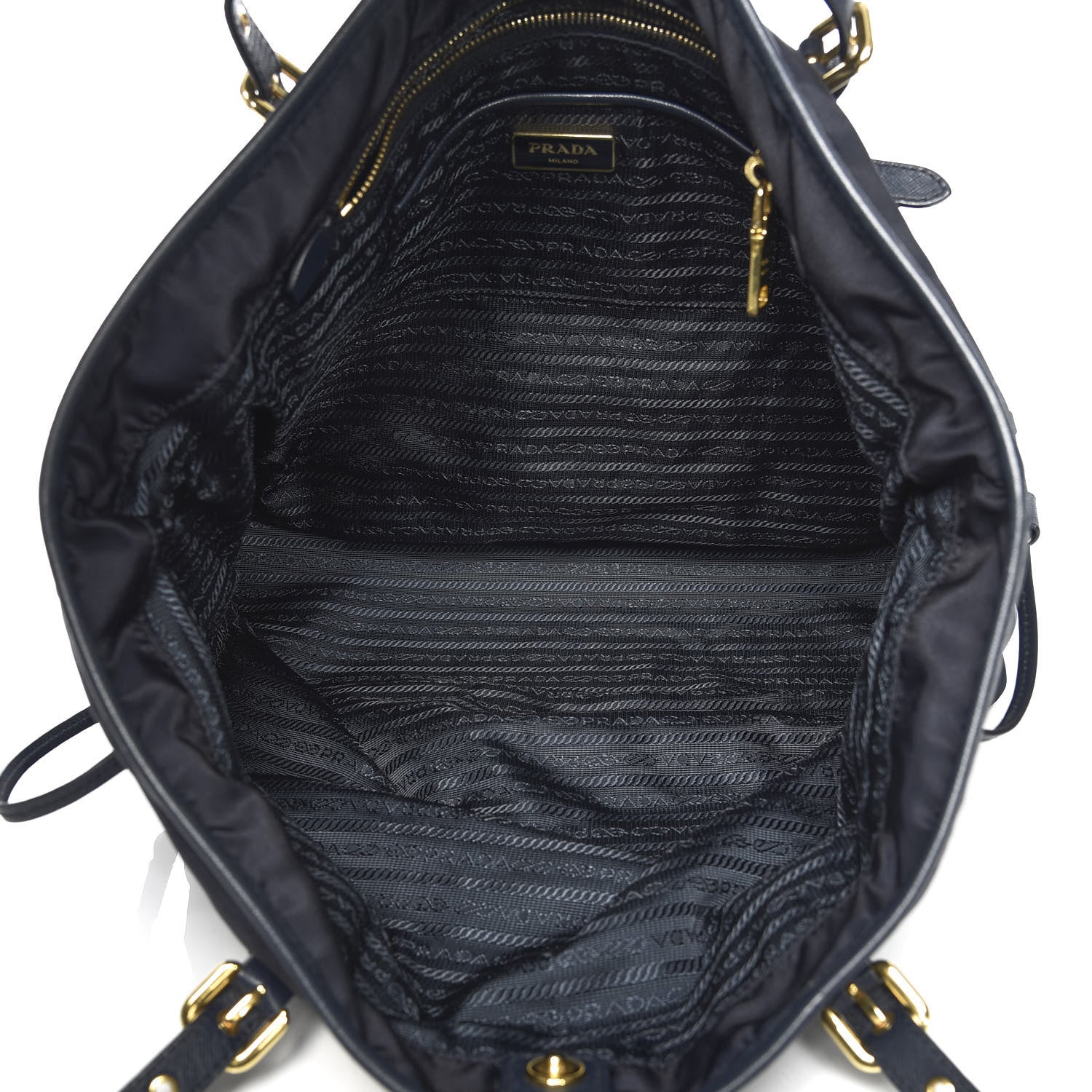 This is an authentic PRADA Tessuto Nylon Saffiano Tote in Baltico. This stylish tote is crafted of soft nylon fabric in navy blue. It features navy blue saffiano leather handles. The top zipper opens to a blue monogram fabric interior with zipper and patch pockets. This roomy tote is ideal for everyday essentials with the stylish sophistication of Prada.Follow this item for alerts. Prada is a registered trademark of Prada. FASHIONPHILE is not affiliated with Prada.